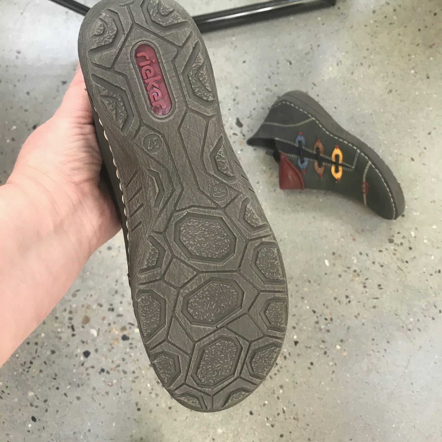 Den lette fôringen og Rieker-soft såle sikrer myk støtte hele dagen.