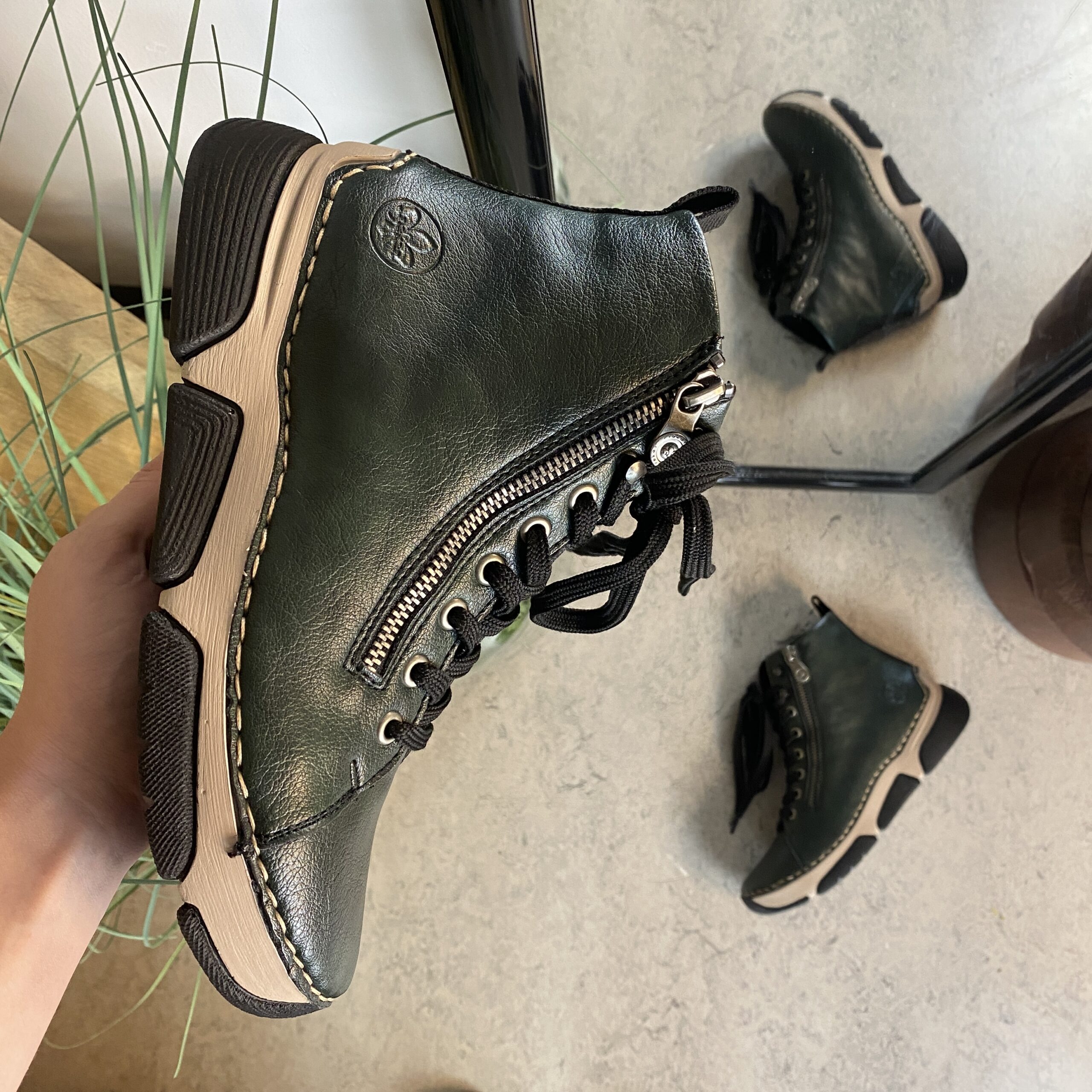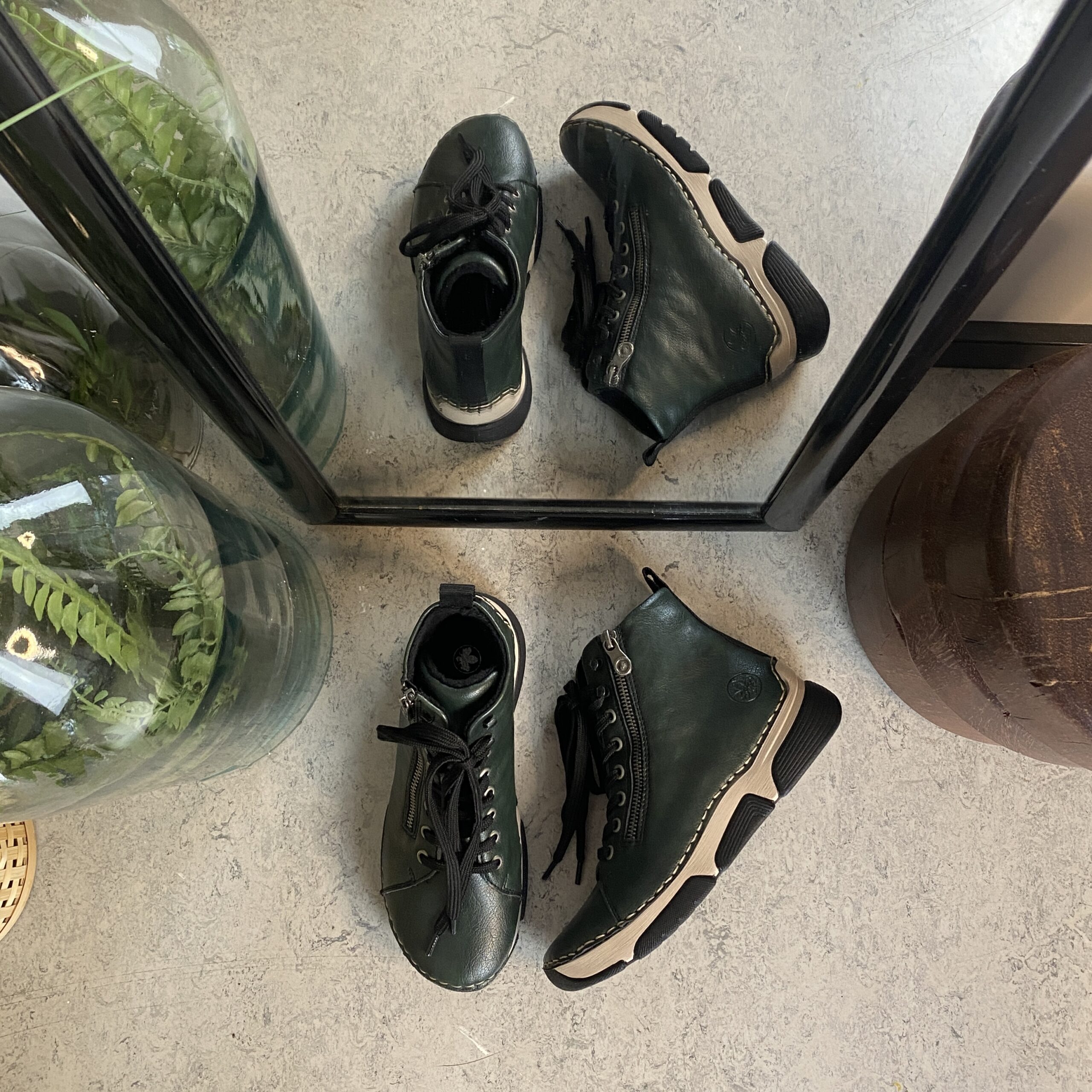 Innsiden er foret med lett materiale og utstyrt med en myk Rieker Antistress-såle som støtter fotens naturlige bevegelse og gir en behagelig følelse hele dagen.