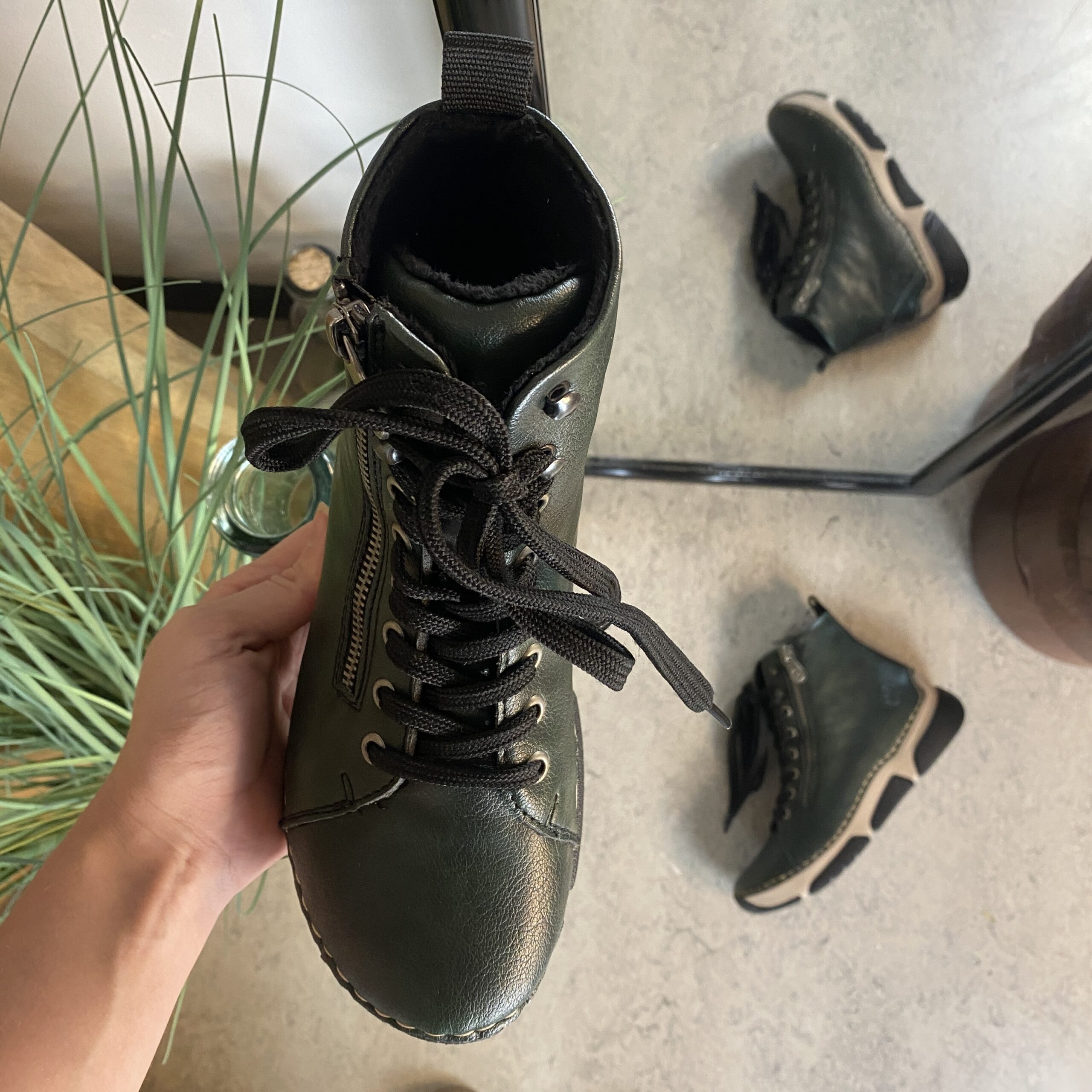 Støvelen har lisser og glidelås, så den er enkel å ta av og på.