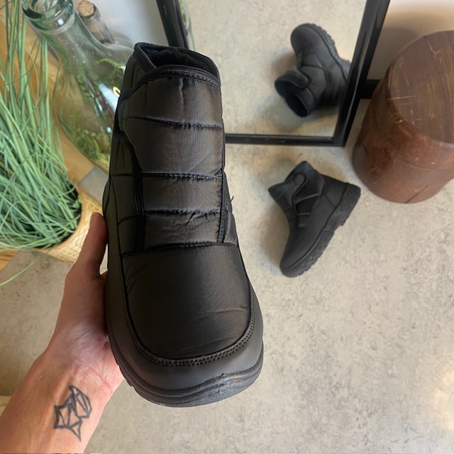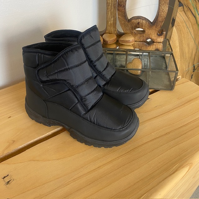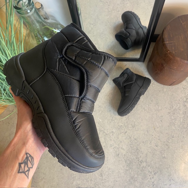 Sort vattert ankelstøvel med fleecefôr og praktisk borrelåsåpning.