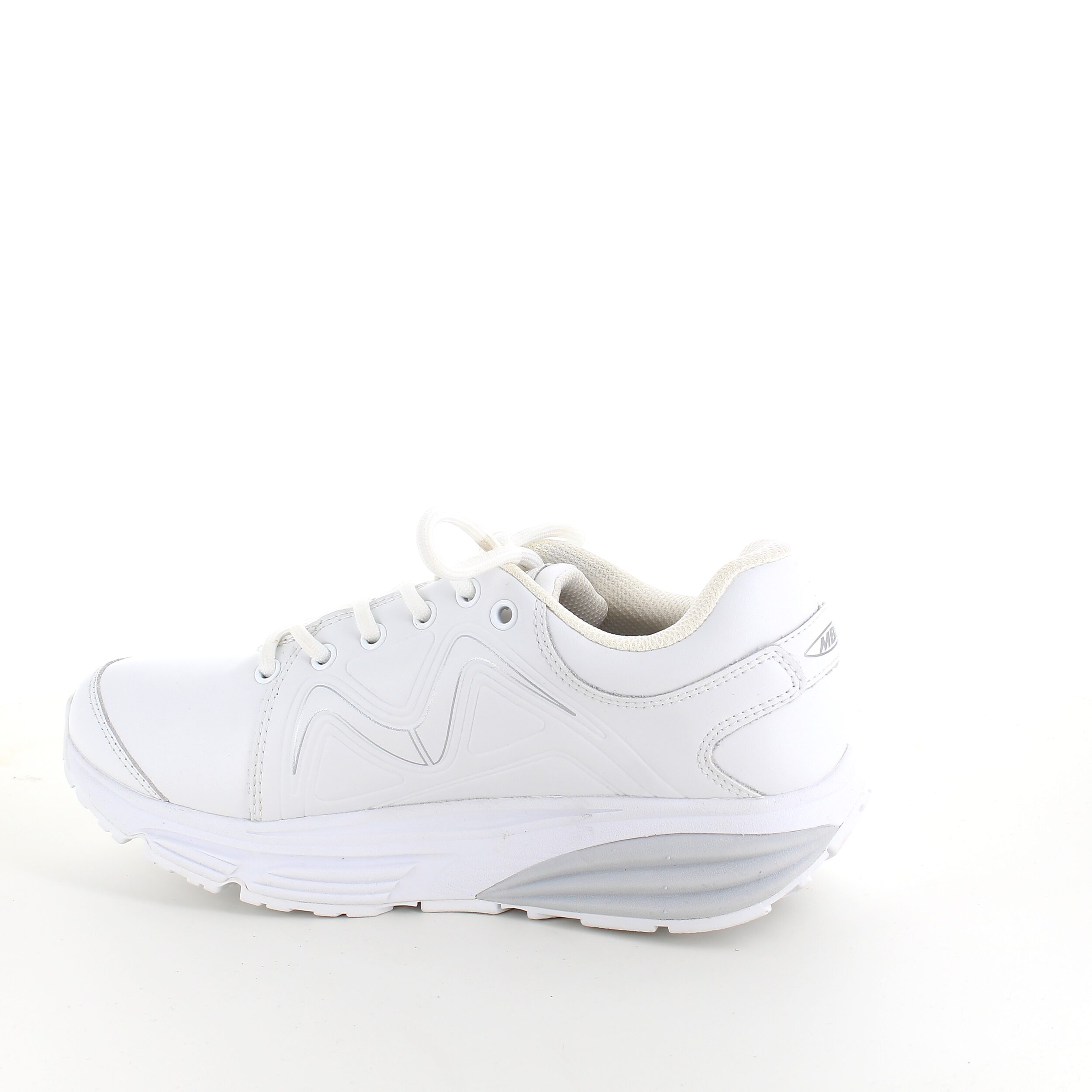 Skoen har MBT’s unike sålekonstruksjon som reduserer belastningen på rygg og ledd.