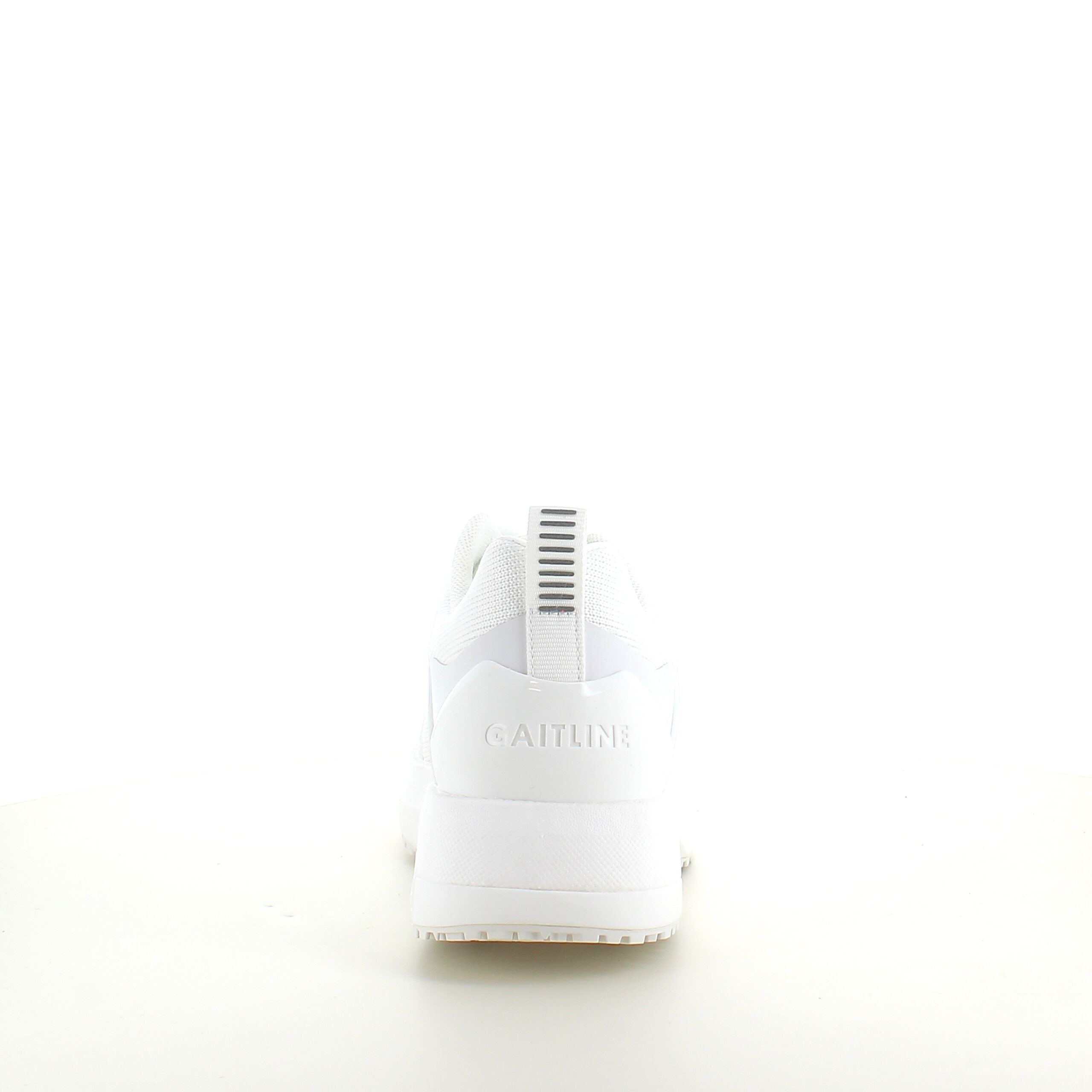 Denne hvite skoen fra Gaitline har en sømløs, elastisk overdel, som tilpasser seg fotens forandringer, og sikrer en lett opplevelse med god pusteevne.