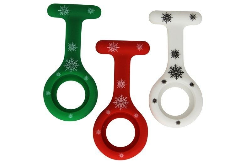 Julecovers med 3 forskjellige farger for sykepleieklokker.