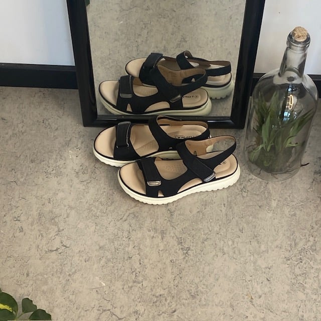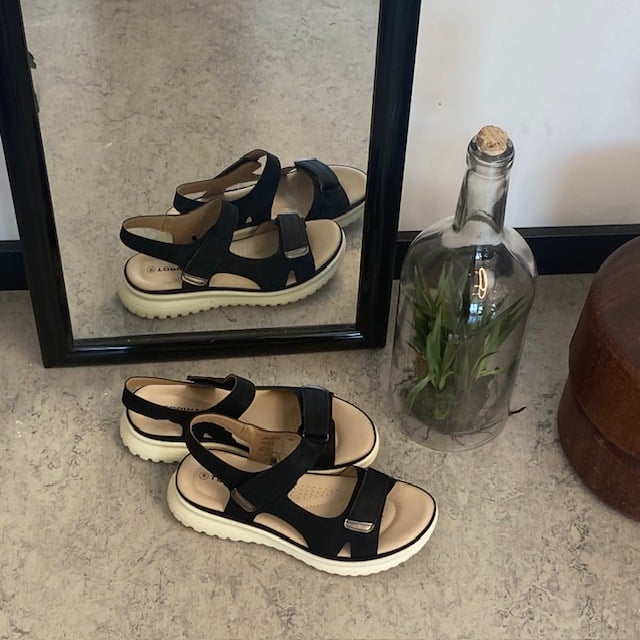 Klassisk svart sandal med ergonomisk komfort – for deg som går langt og står godt