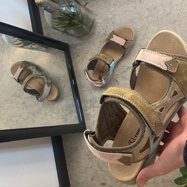 Sandalen har tre justerbare borrelåsstropper, som gjør det enkelt å oppnå den perfekte passformen – også hvis føttene dine hovner opp i løpet av dagen. Den ergonomiske og lett polstrede innersålen gir støtte og mykhet, mens den fleksible yttersålen sikrer at du står godt fast.