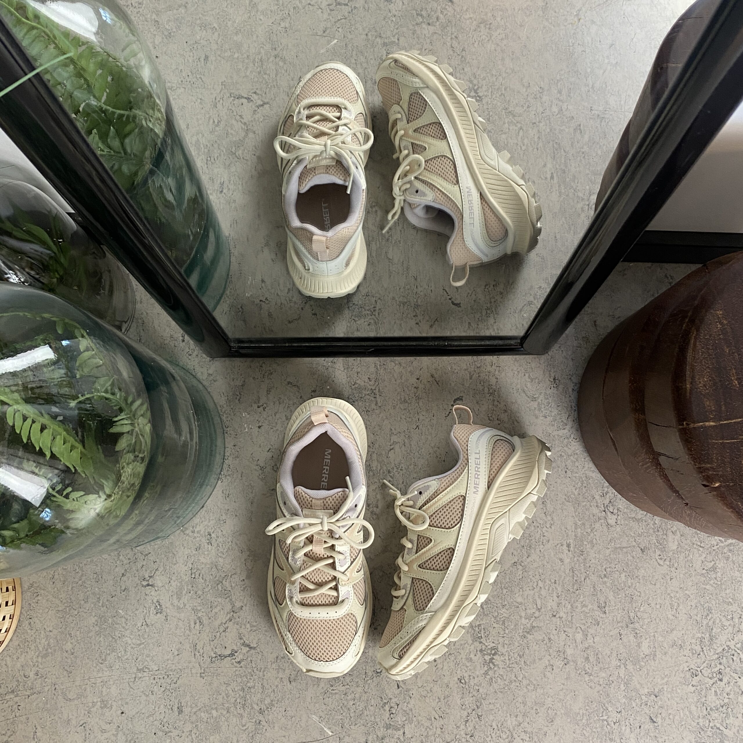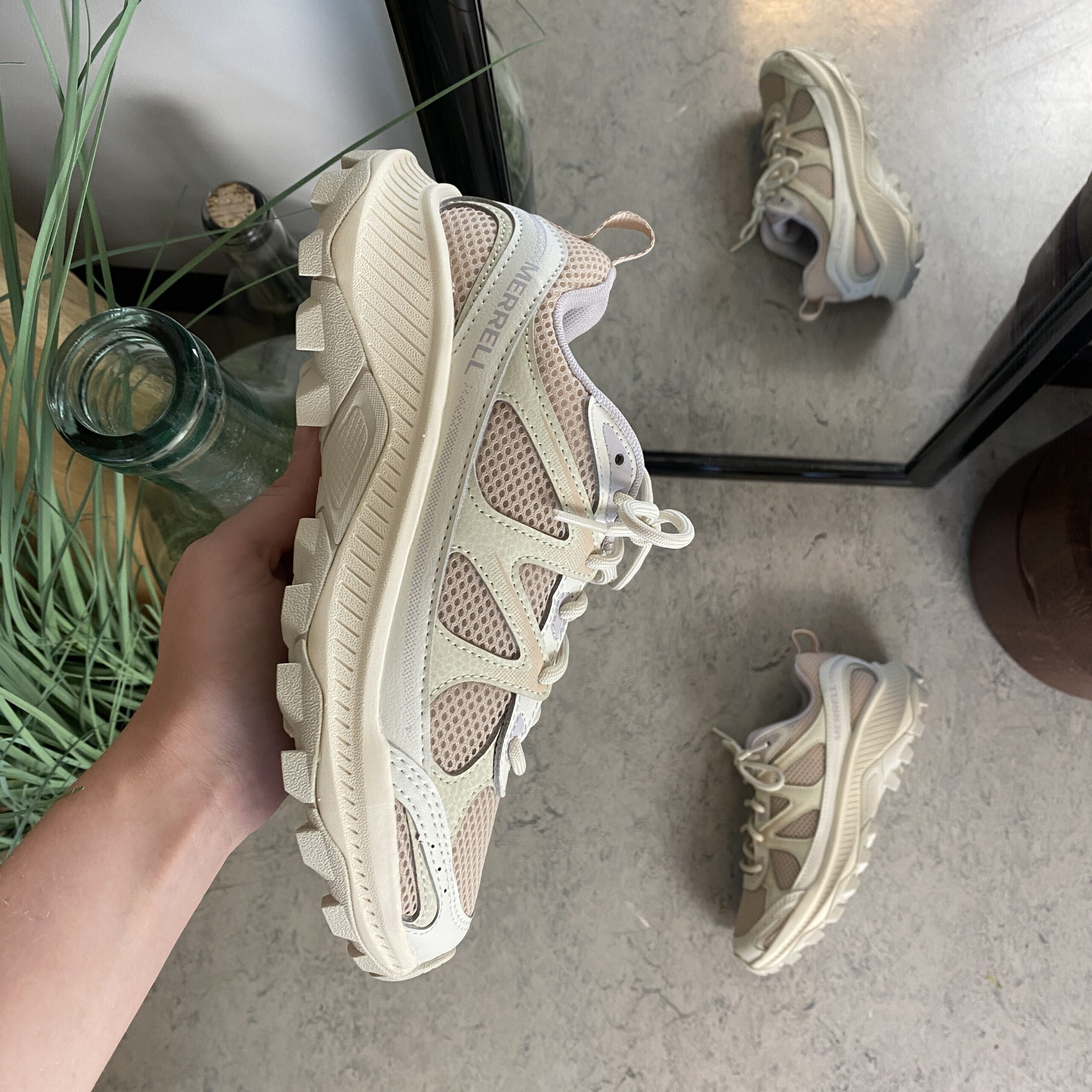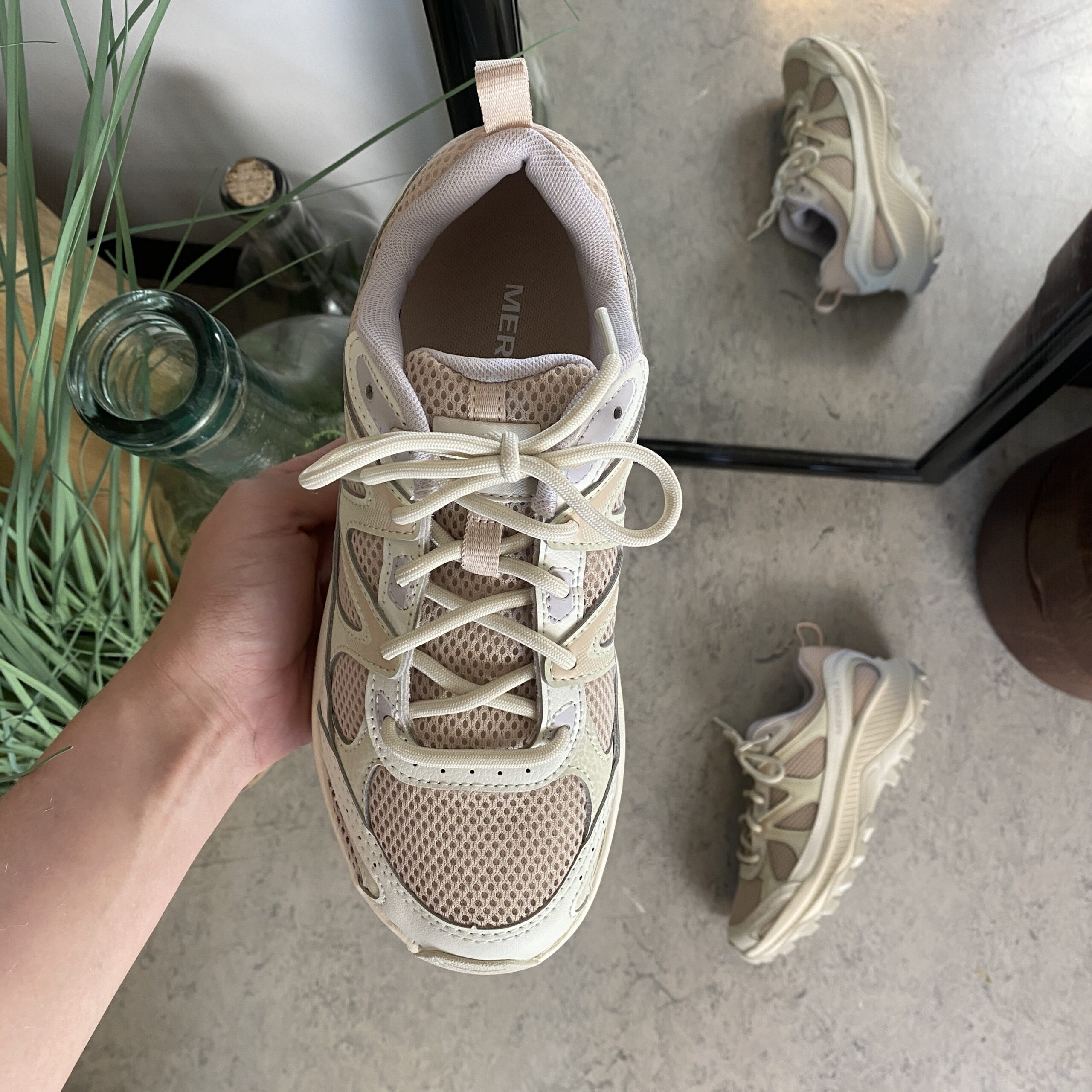 Denne Merrell-sko er laget med en overdel i pustende mesh, som gir ventilasjon til føttene og holder dem friske hele dagen.