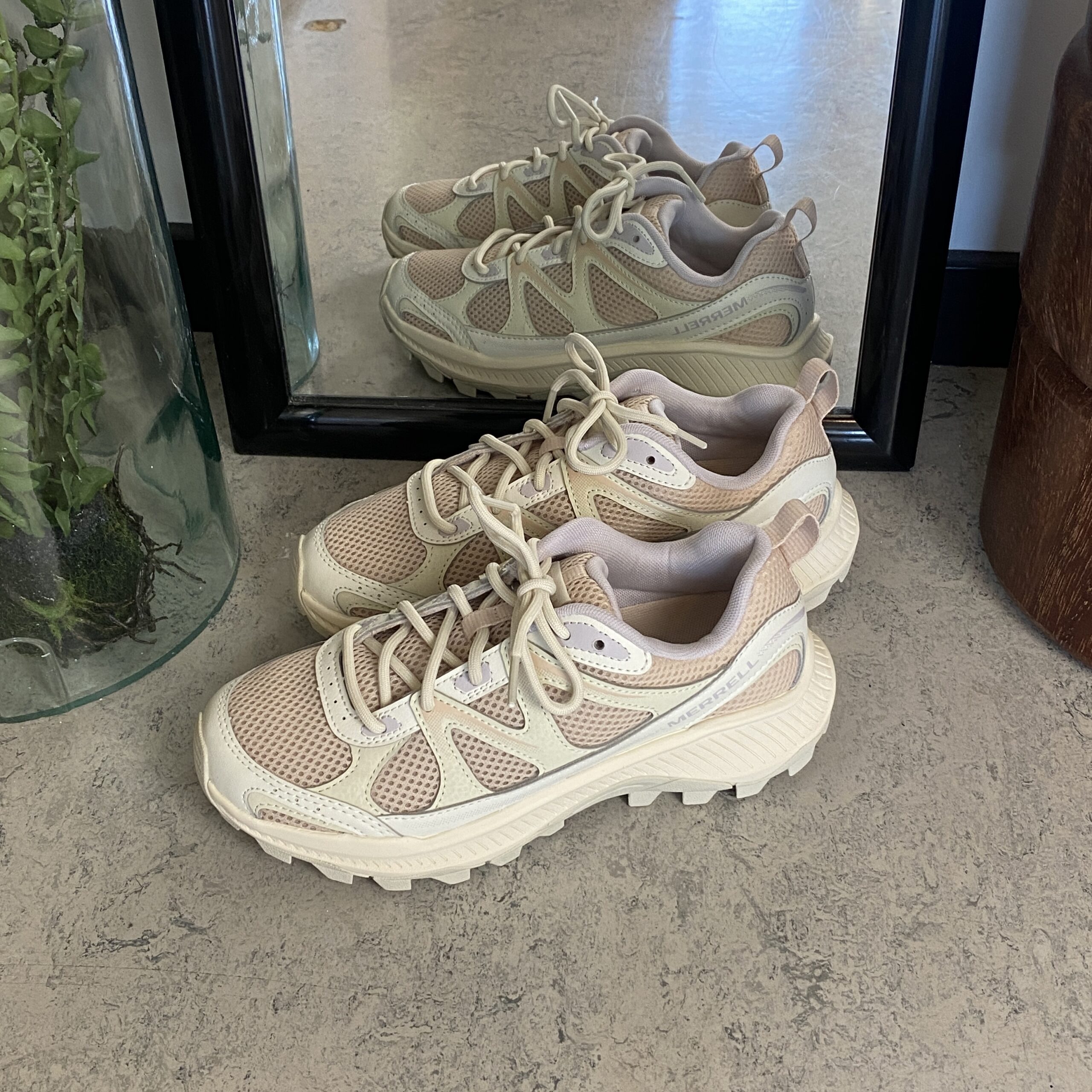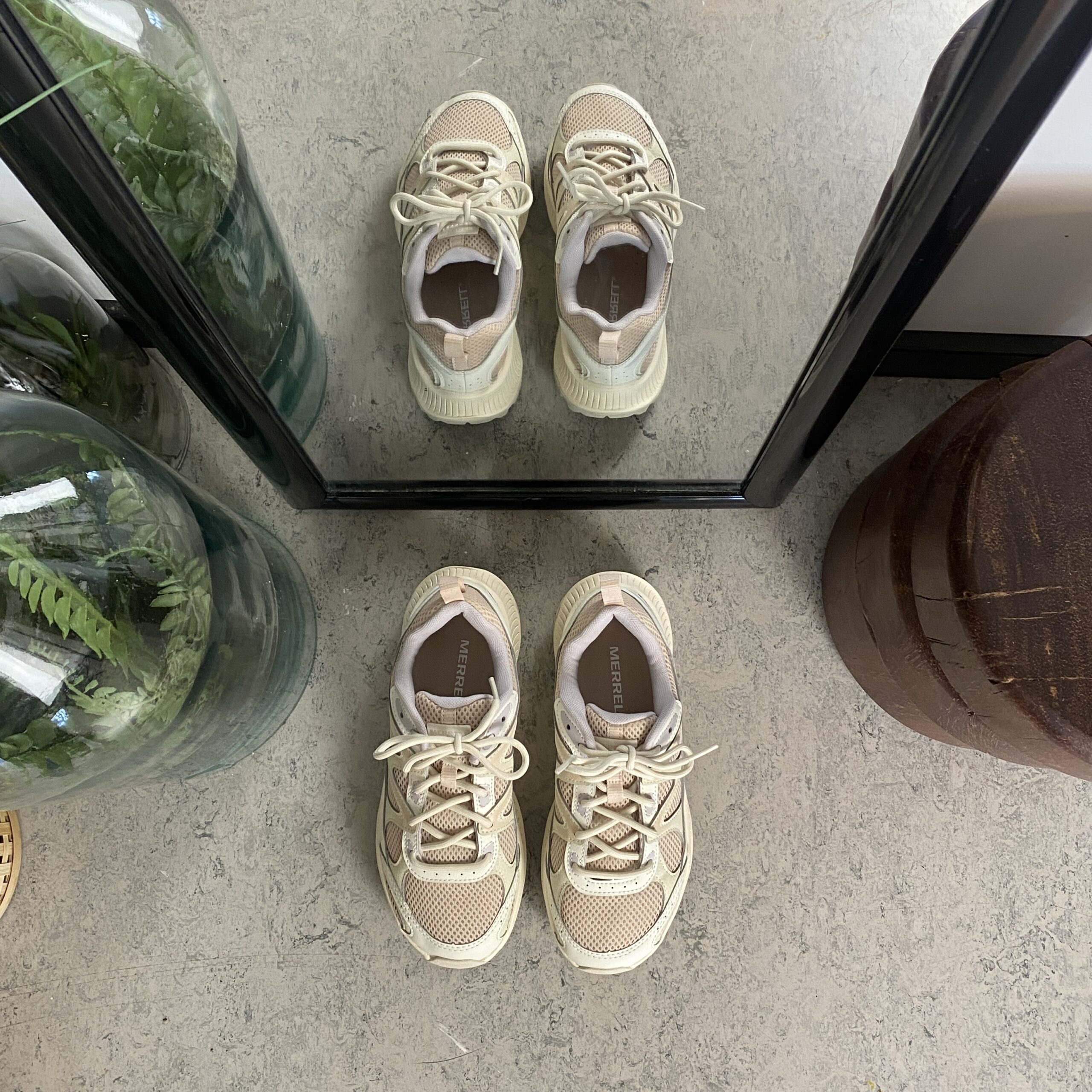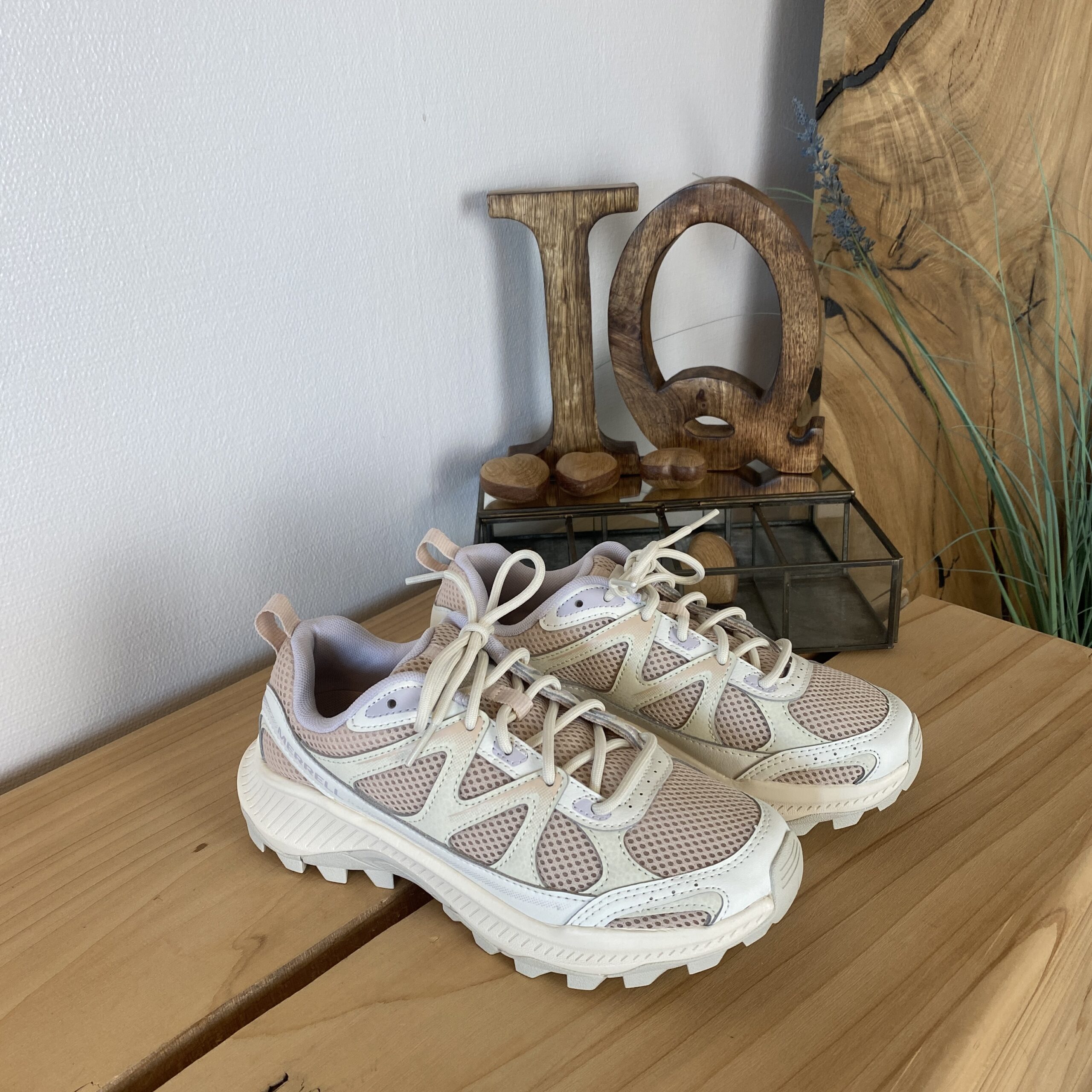 Denne Merrell-sko er laget med en overdel i pustende mesh, som gir ventilasjon til føttene og holder dem friske hele dagen.