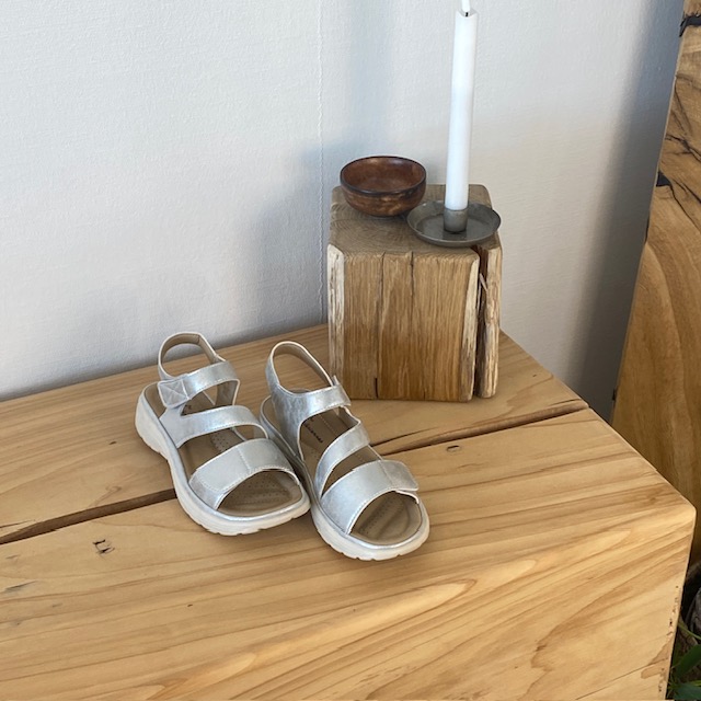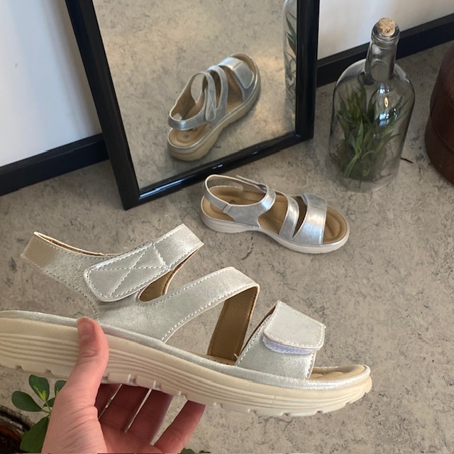 Komfortabel sølvsandal med 2 velcrostropper – perfekt til hverdagen