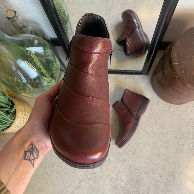 Kort støvel i bordeaux skinn fra Green Comfort