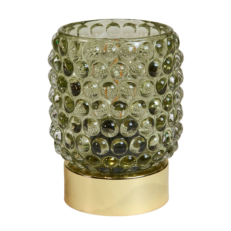 Denne dekorative LED-lampen har et elegant design med fine små bobler i grønt glass, som gir et unikt og stilfullt uttrykk. Med sin kompakte størrelse og koselige belysning passer den perfekt til ethvert sted i hjemmet. En flott gaveidé eller et vakkert innslag i din egen boliginnredning.