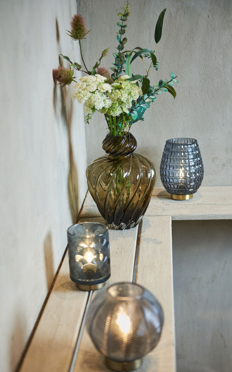 Du får en dekorativ lampe som utstråler både kvalitet og estetikk. Dens rillede glassdesign reflekterer lyset på en vakker måte, noe som gjør den til et attraktivt tillegg til både stuen, soverommet eller som gave til en spesiell person.