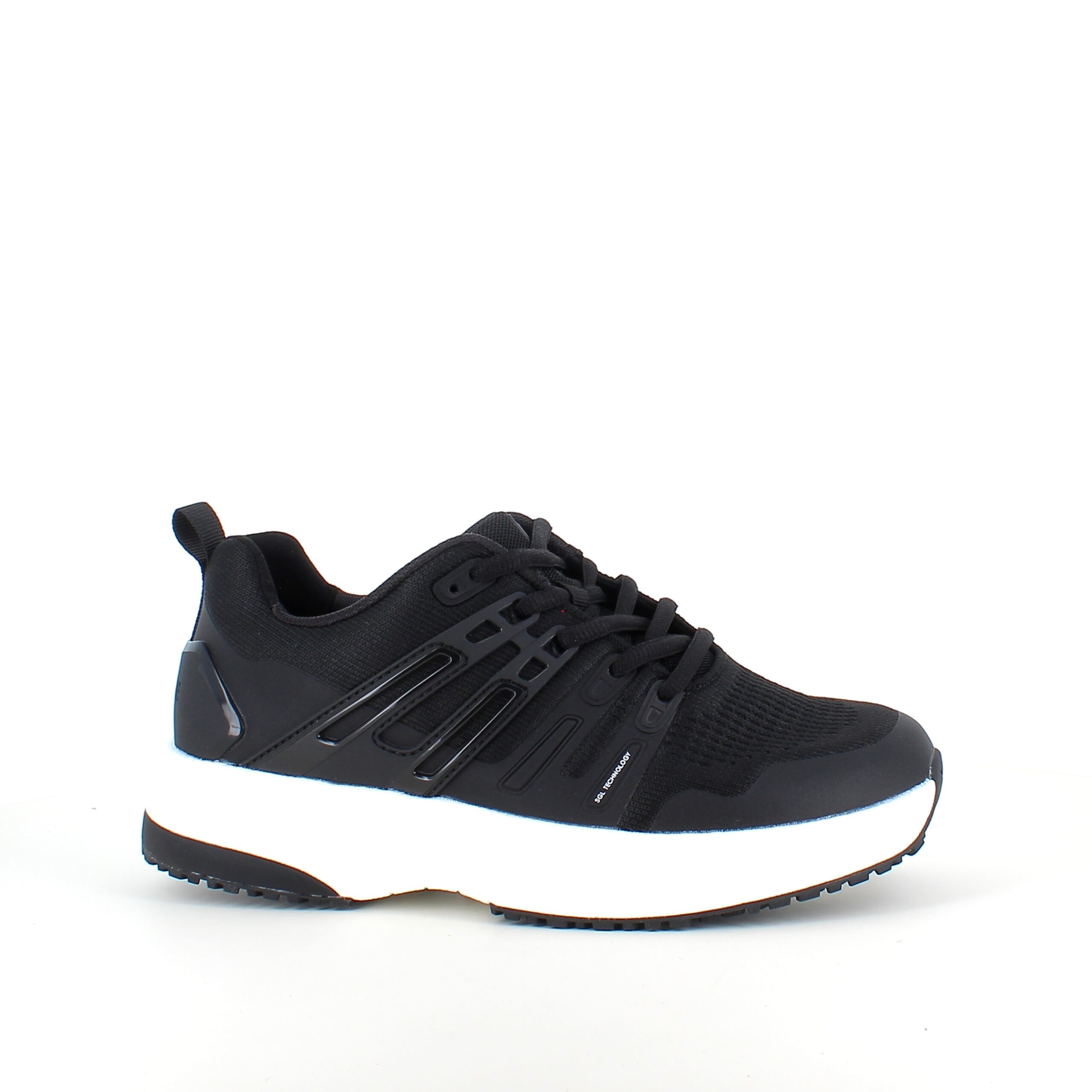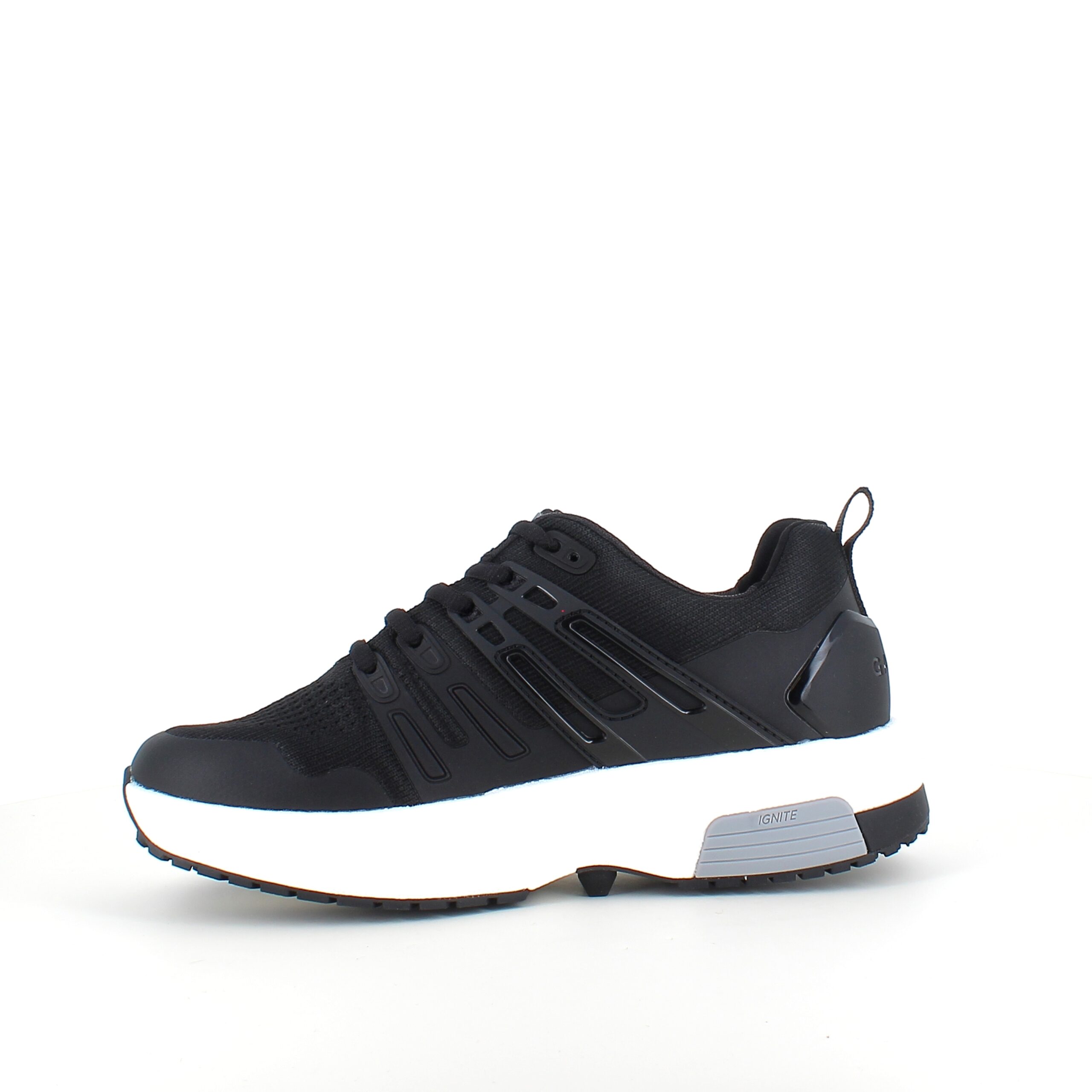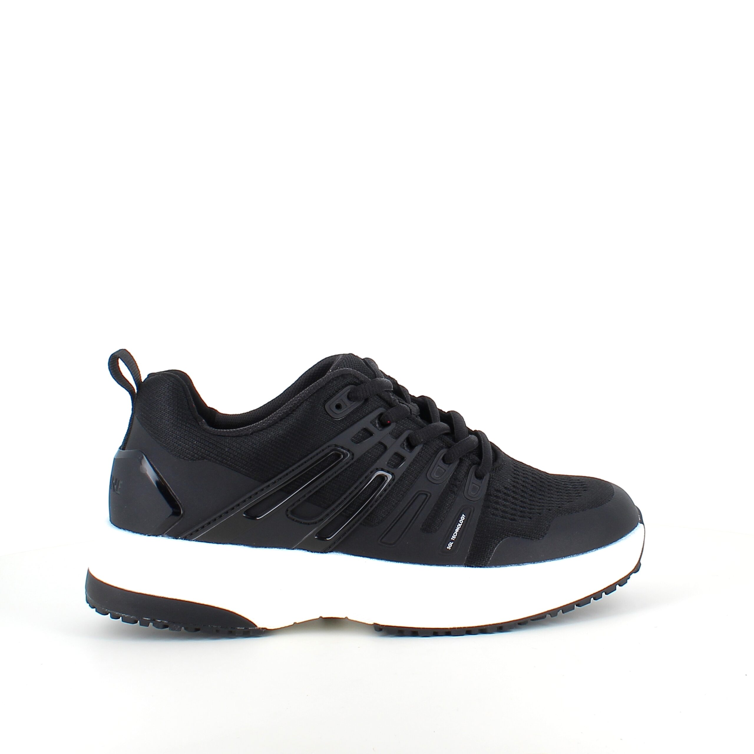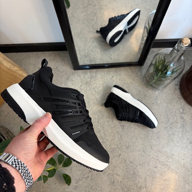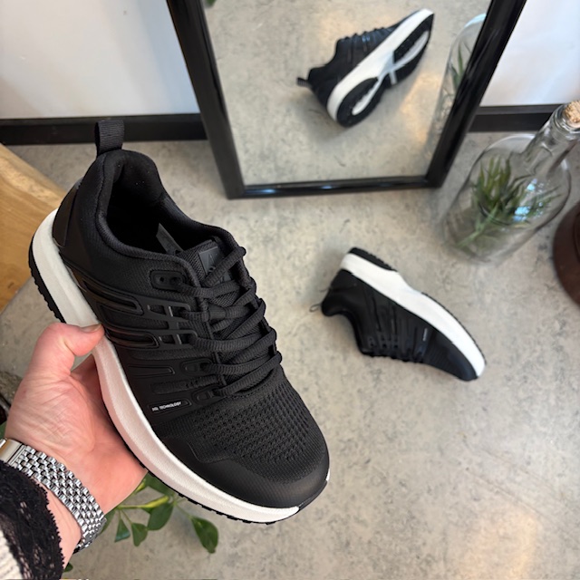 Denne sorte sko fra Gaitline har en sømløs, elastisk overdel som tilpasser seg fotens endringer, og sikrer en lett opplevelse med god pusteevne.