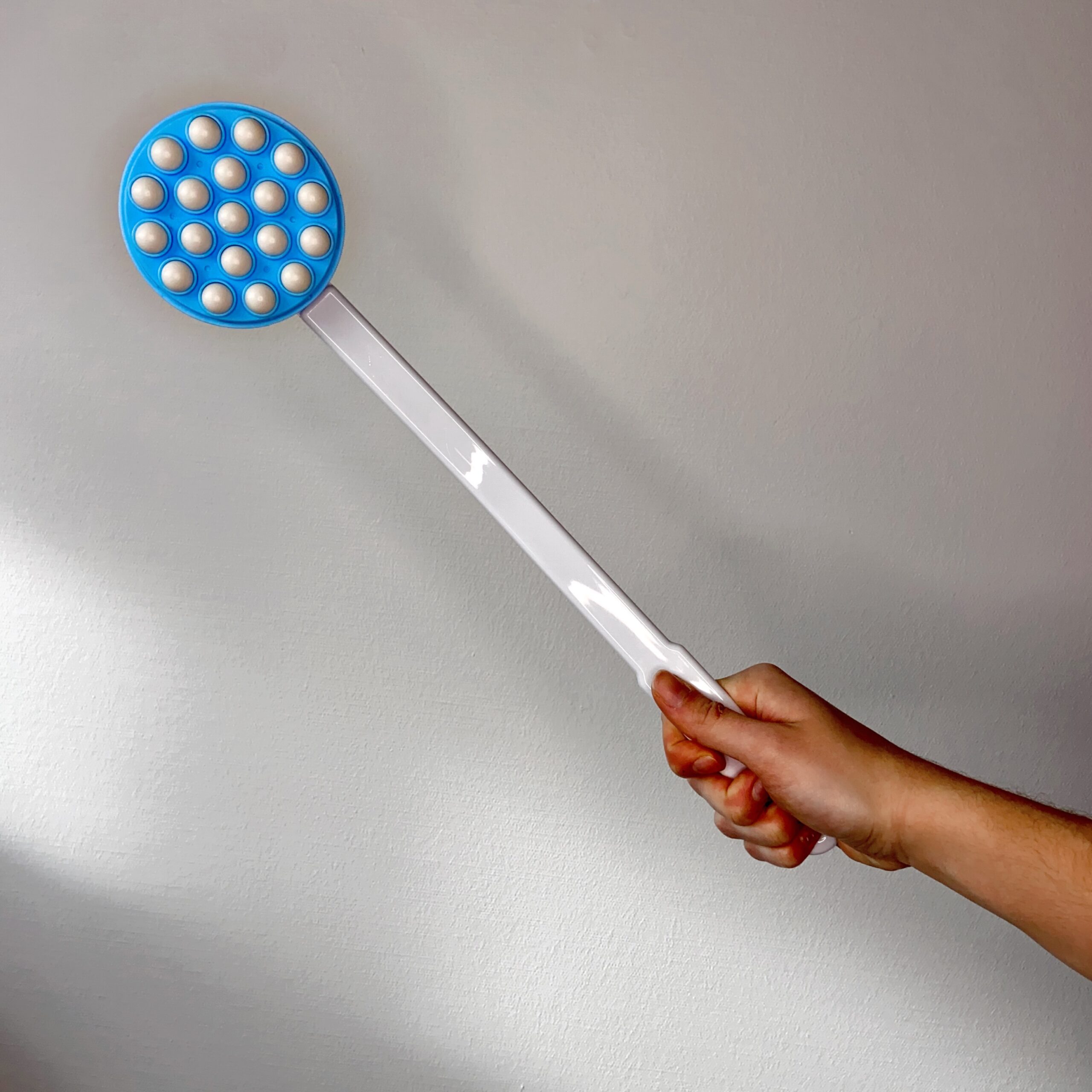 Forlengelsesstangen festes til hodet, og du kan nå enkelt fordele lotion på ryggen eller andre steder hvor armene er for korte.