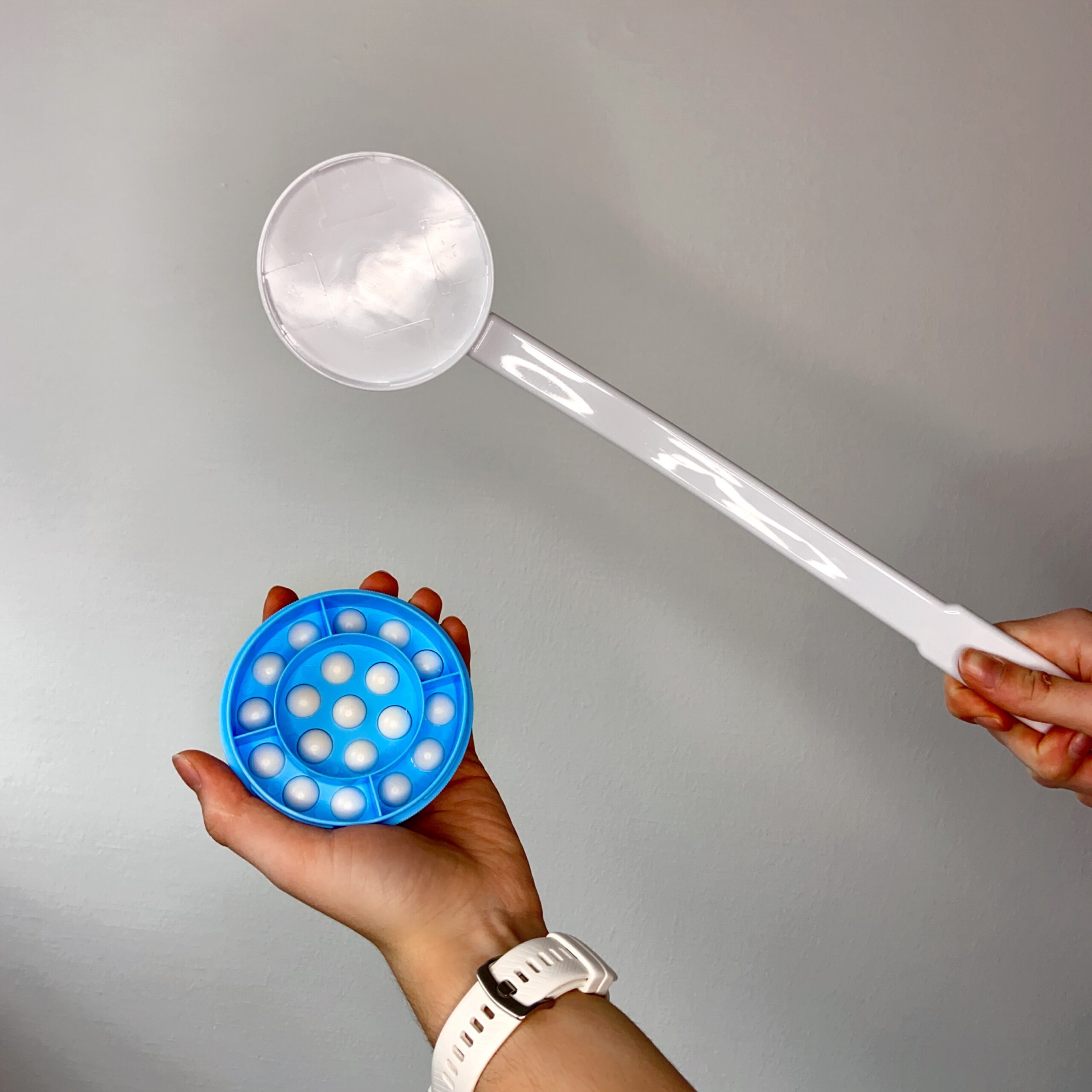 Lotionapplikator med 19 kuler på selve hodet av lotionapplikatoren.