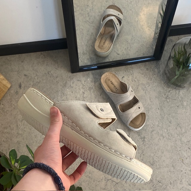 Lys slip-on sandal– enkel, myk og luftig for hverdagens mange skritt