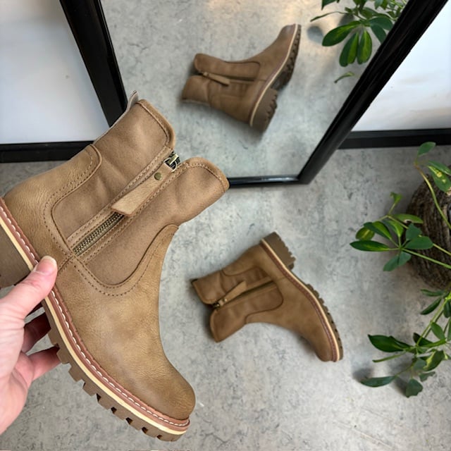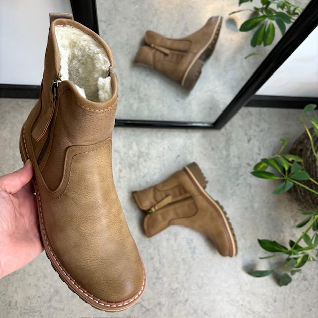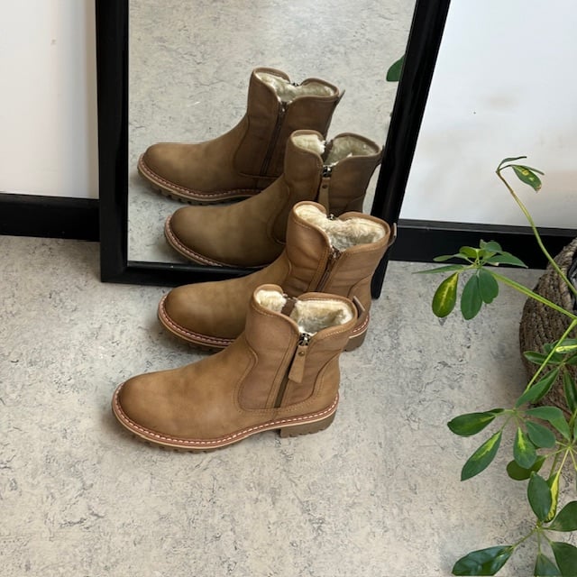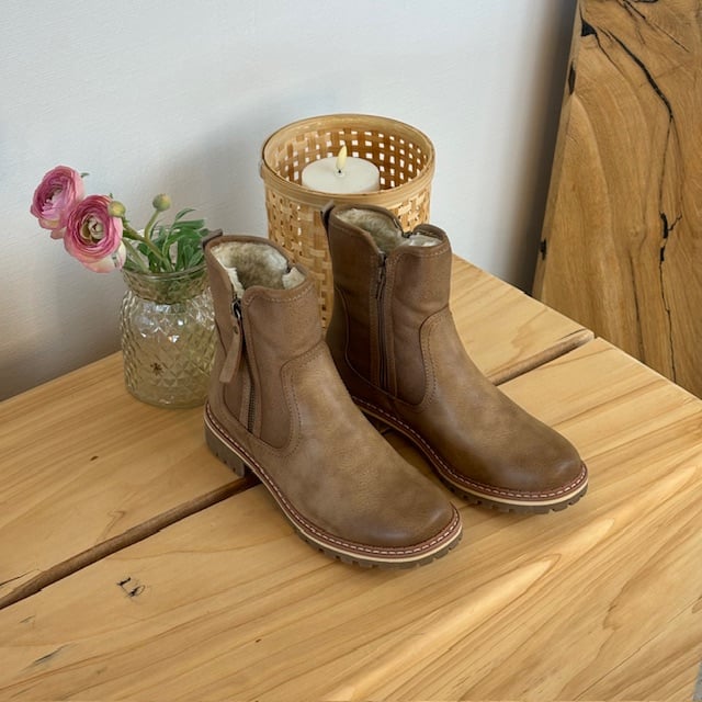 Lysebrun vinterstøvel med fôr og smarte detaljer