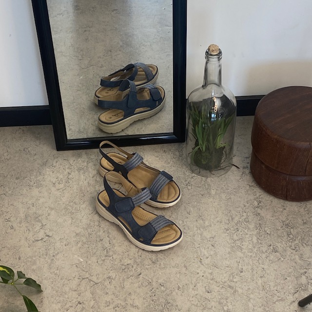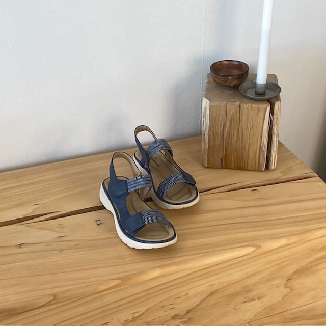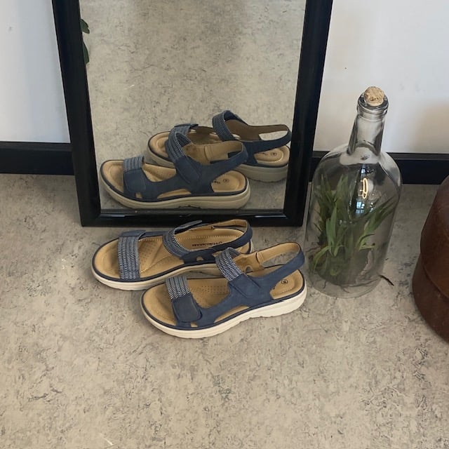 Denne elegante komfortsandalen i klassisk marineblå er en sikker vinner for deg som ønsker støtte, fleksibilitet og et stilrent uttrykk i én og samme sko. Sandalen kombinerer myke materialer, fleksible elastikkremmer og praktiske borrelåslukninger – perfekt for en aktiv hverdag.