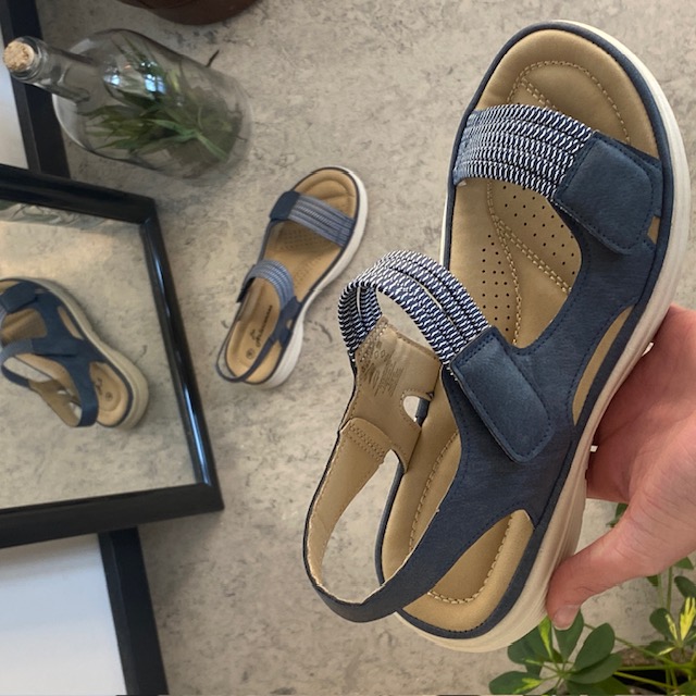 Marine komfortsandal med elastikk og borrelås – stilfull støtte hele dagen