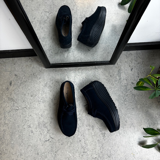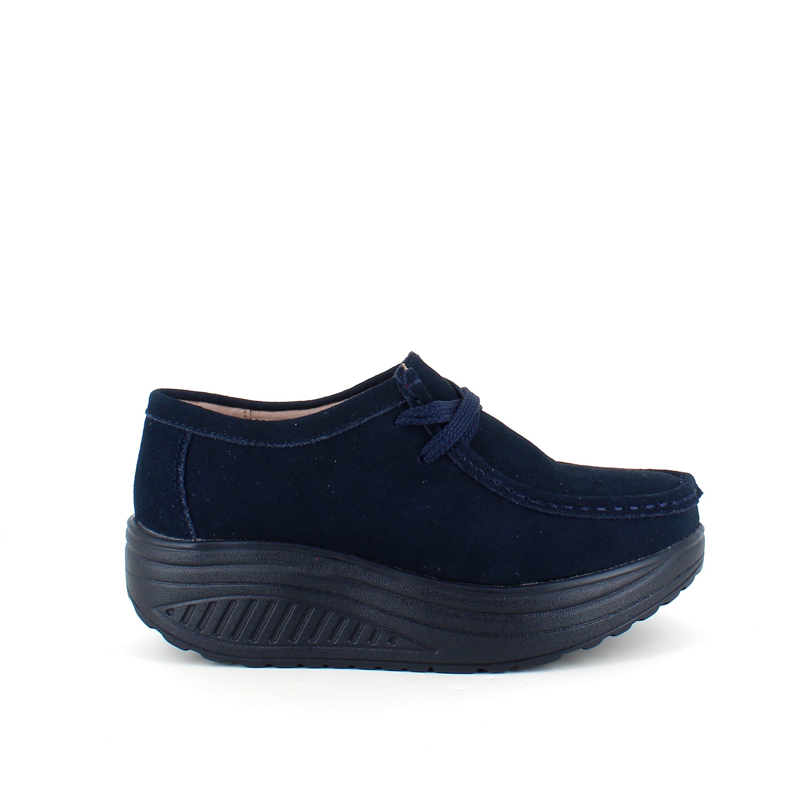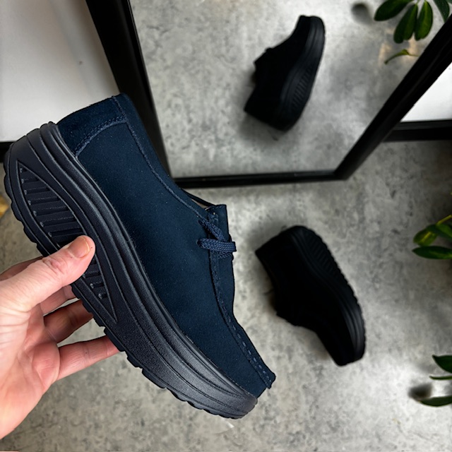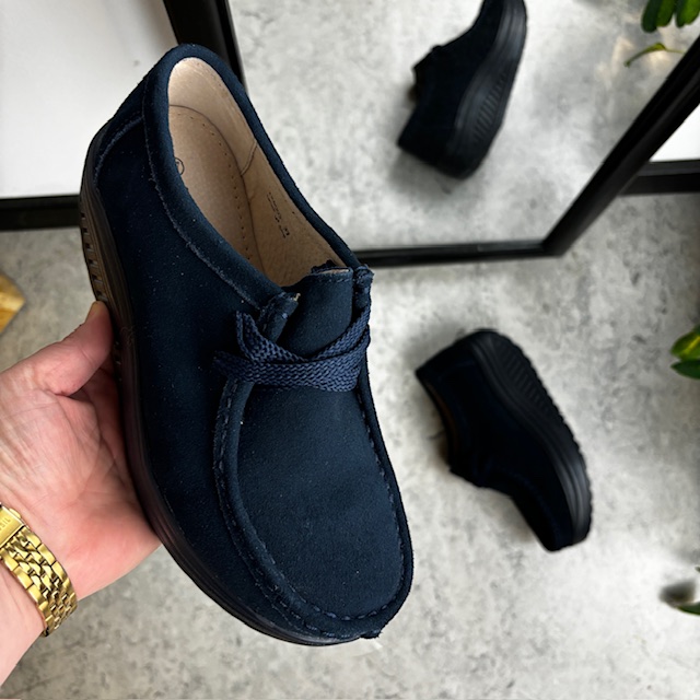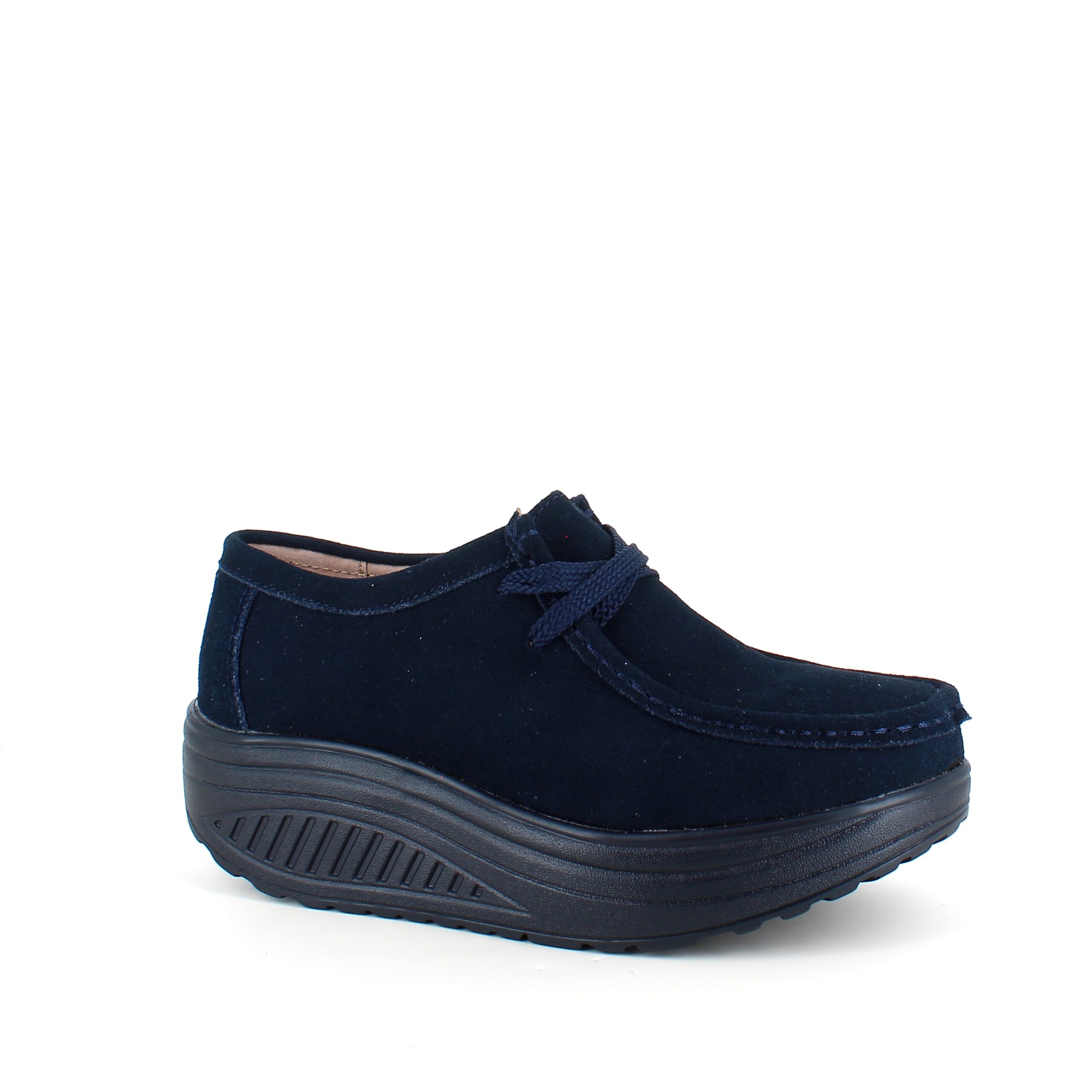 Marineblå semskede sko med vuggende såle og støtte for fotbuen