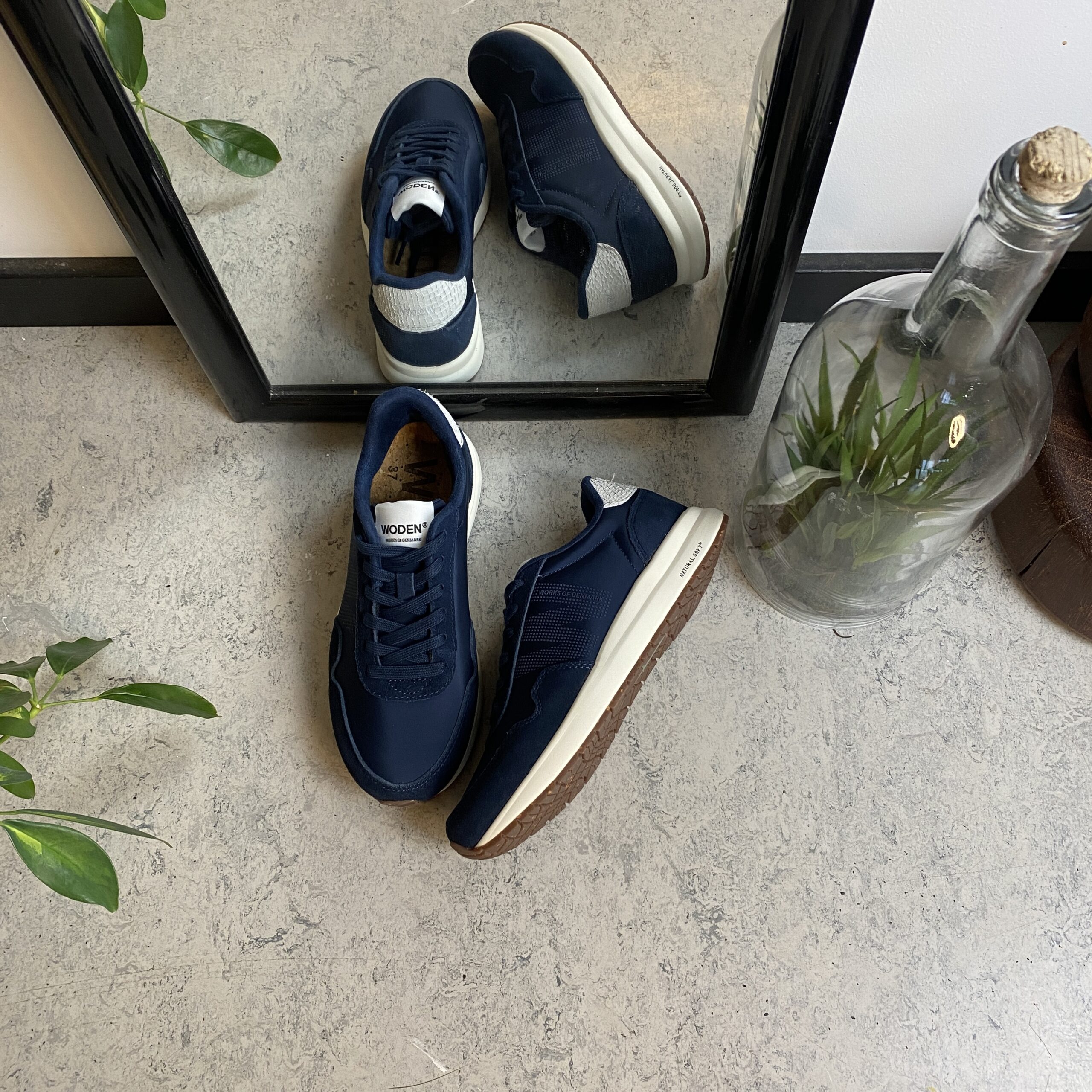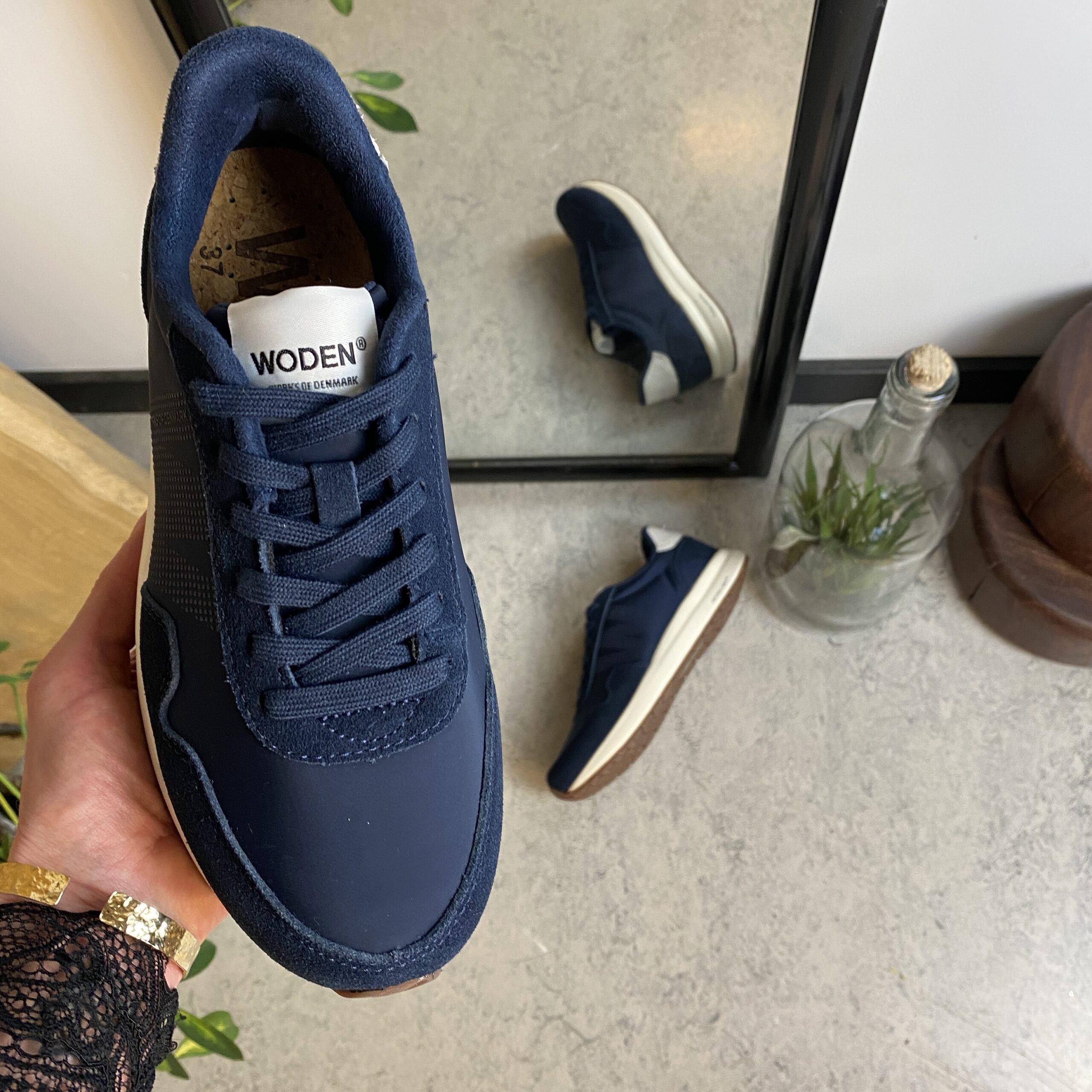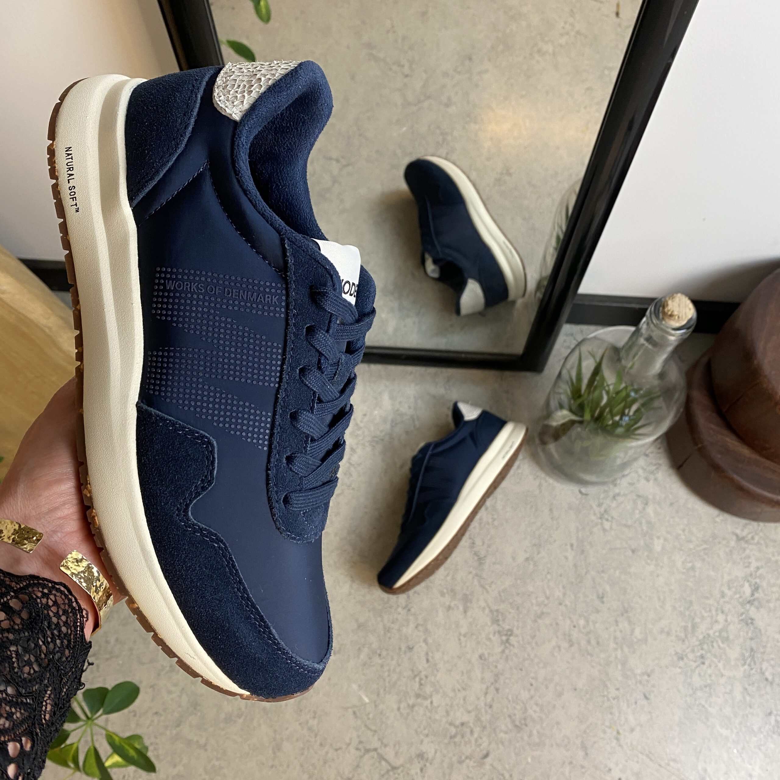 Marineblå Woden-sko med god støtdemping