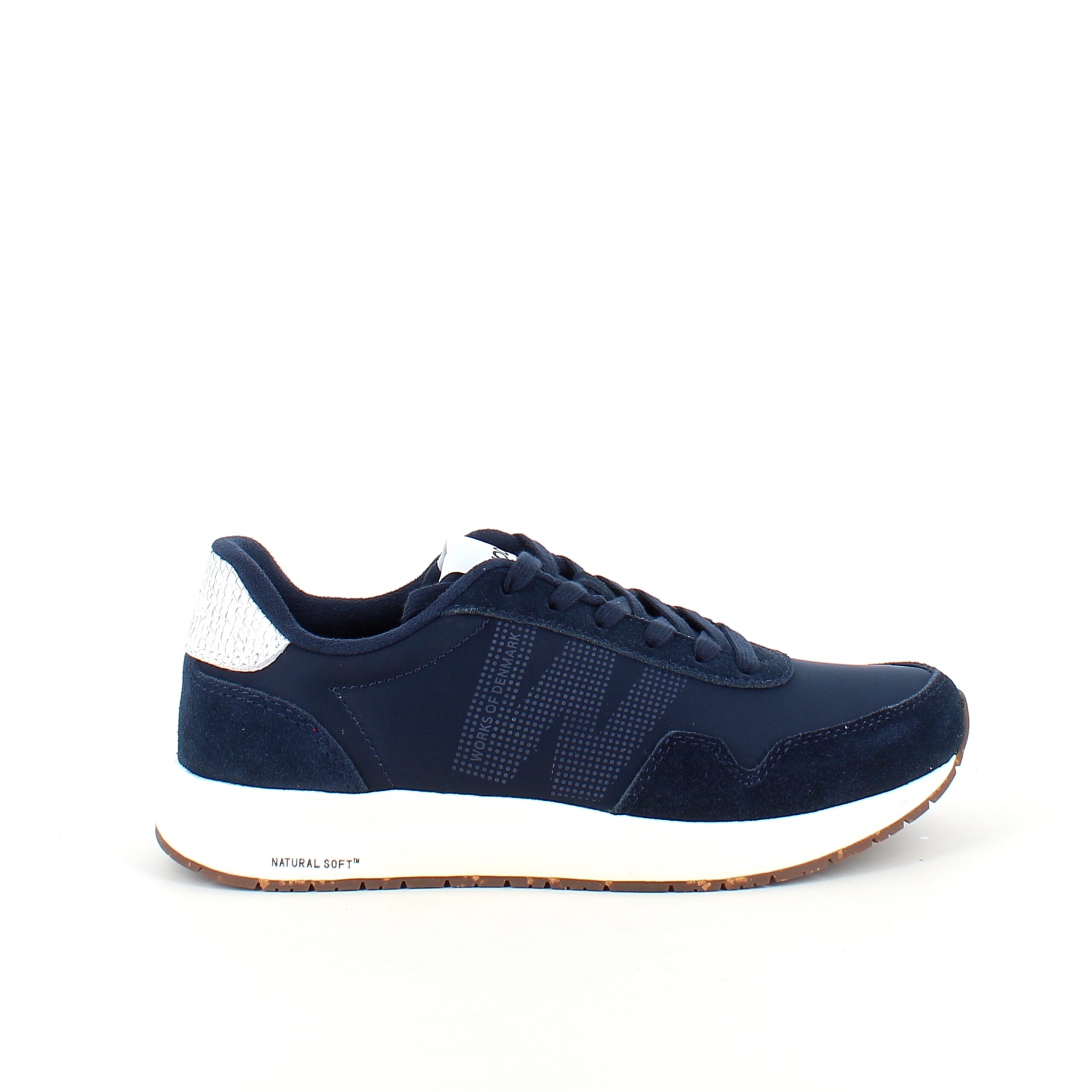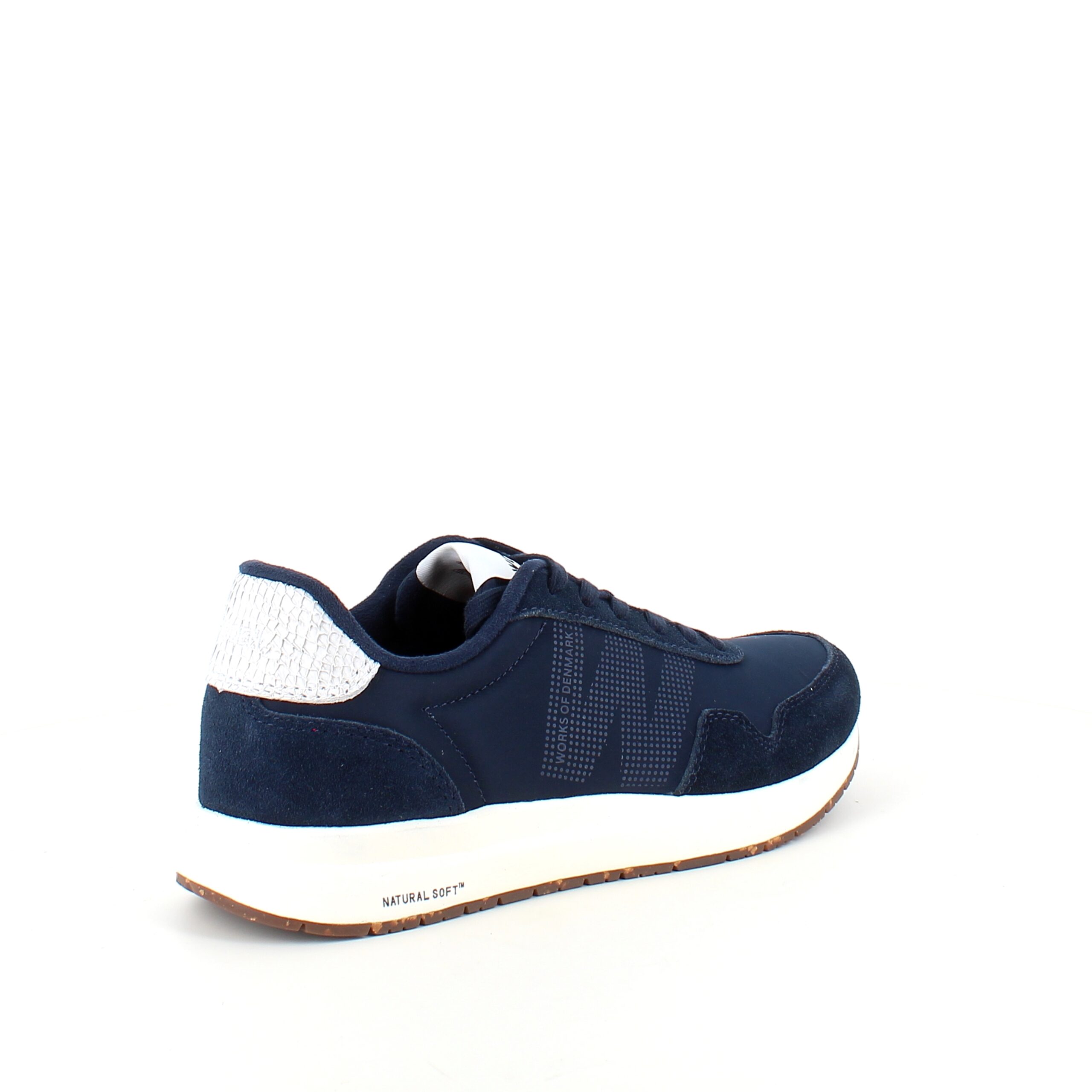 Navy Woden-sko med god støtdemping som har en Natural Soft-teknologisåle.