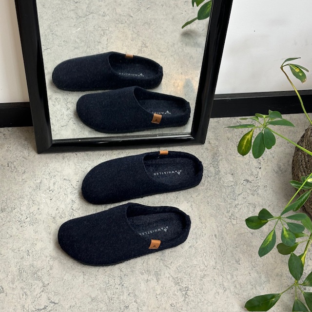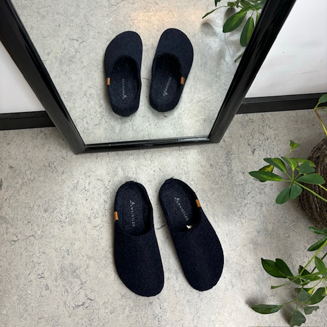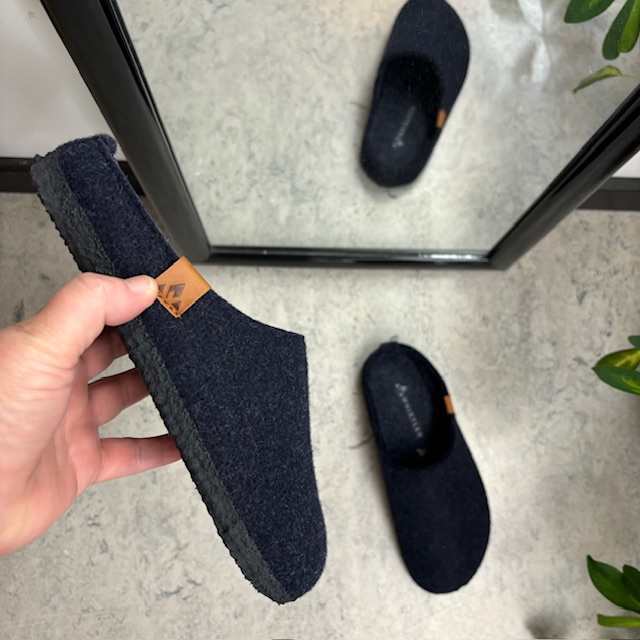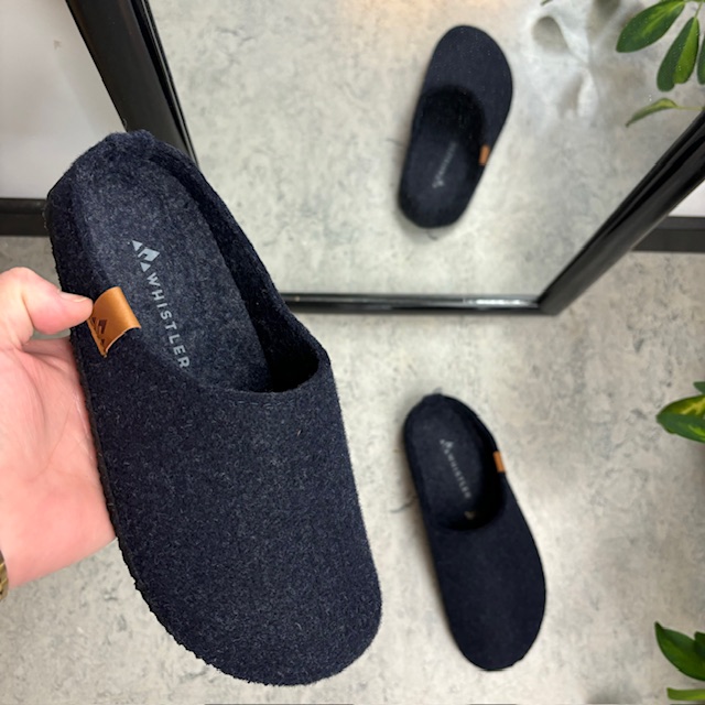 Mørkeblå filtede tøfler fra Whistler med svangstøtte