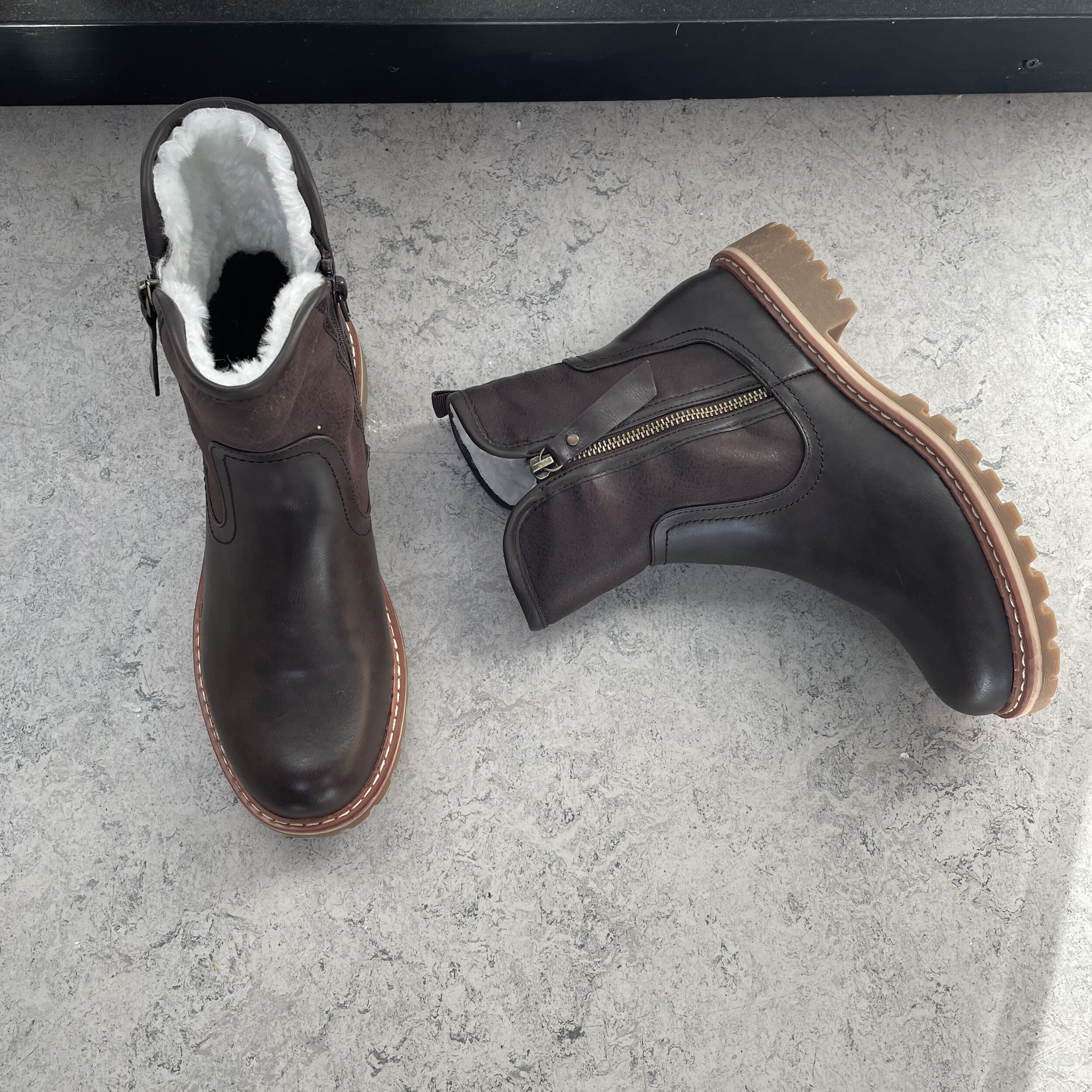 Mørkebrun vinterstøvel med fôr og smarte detaljer