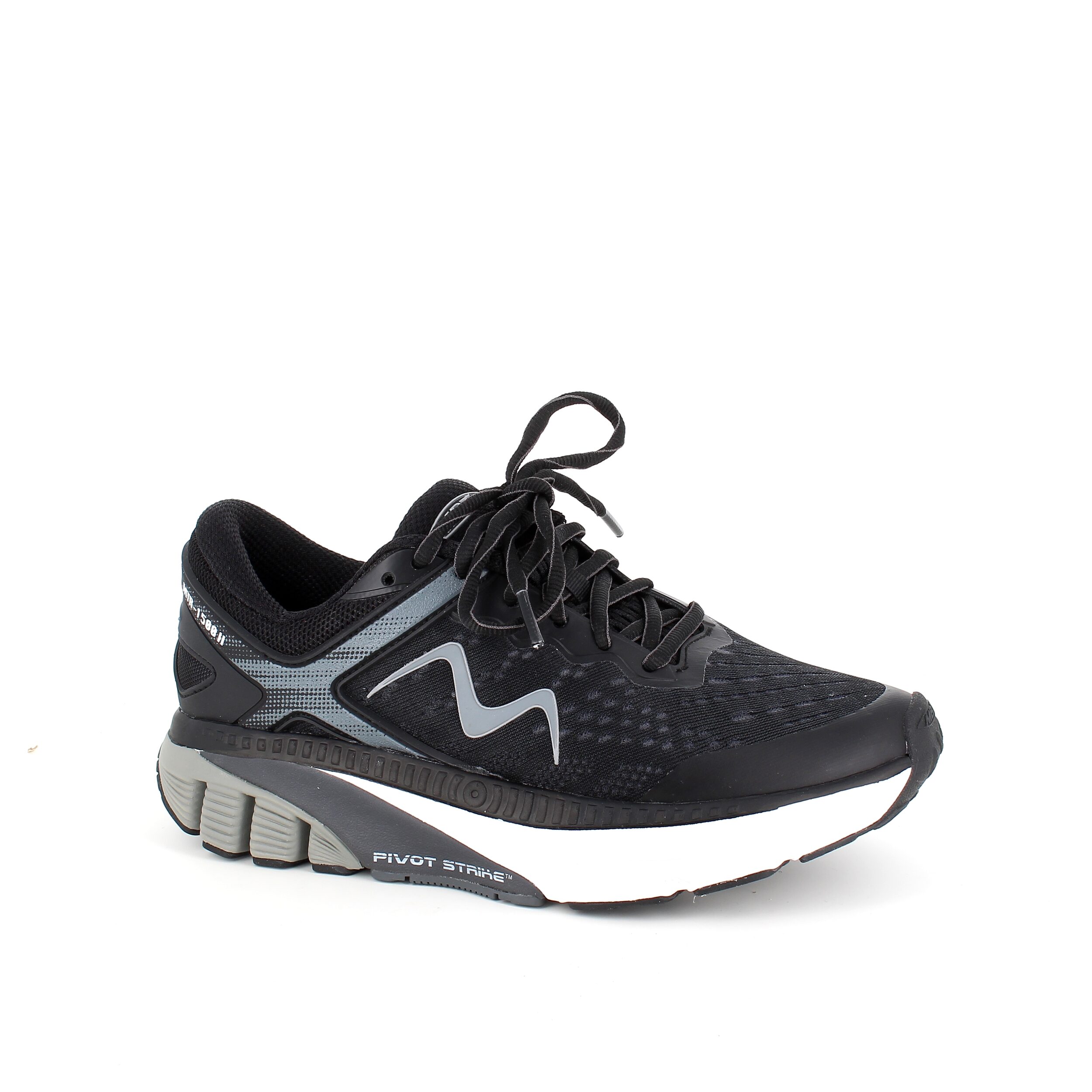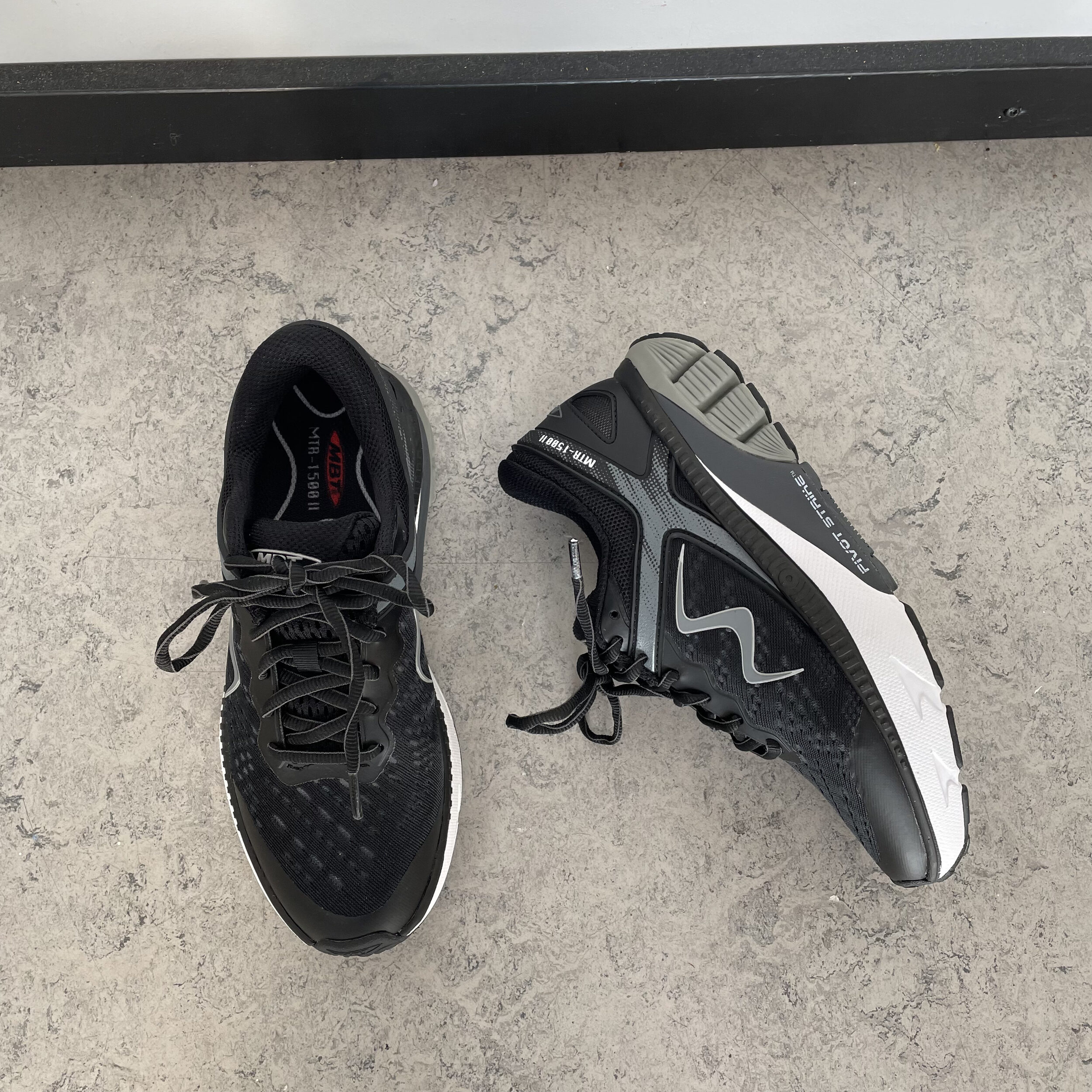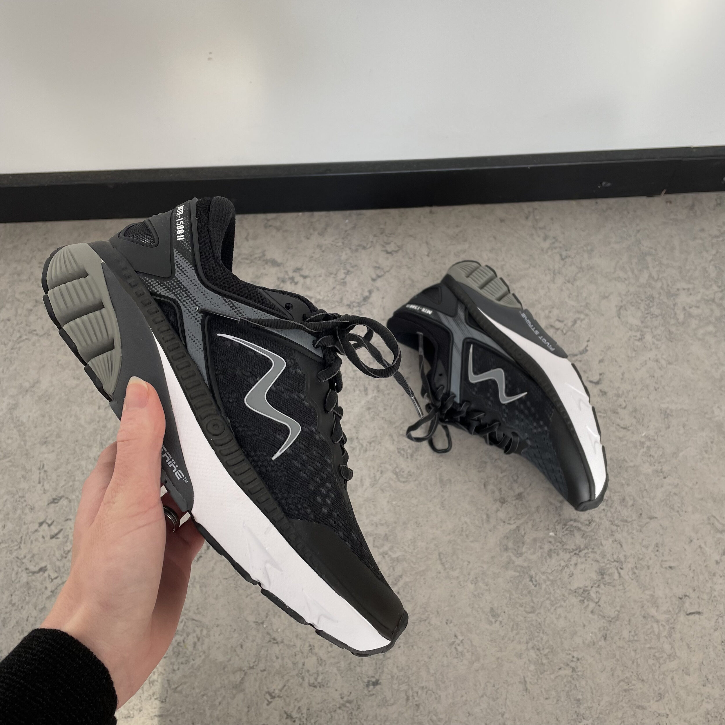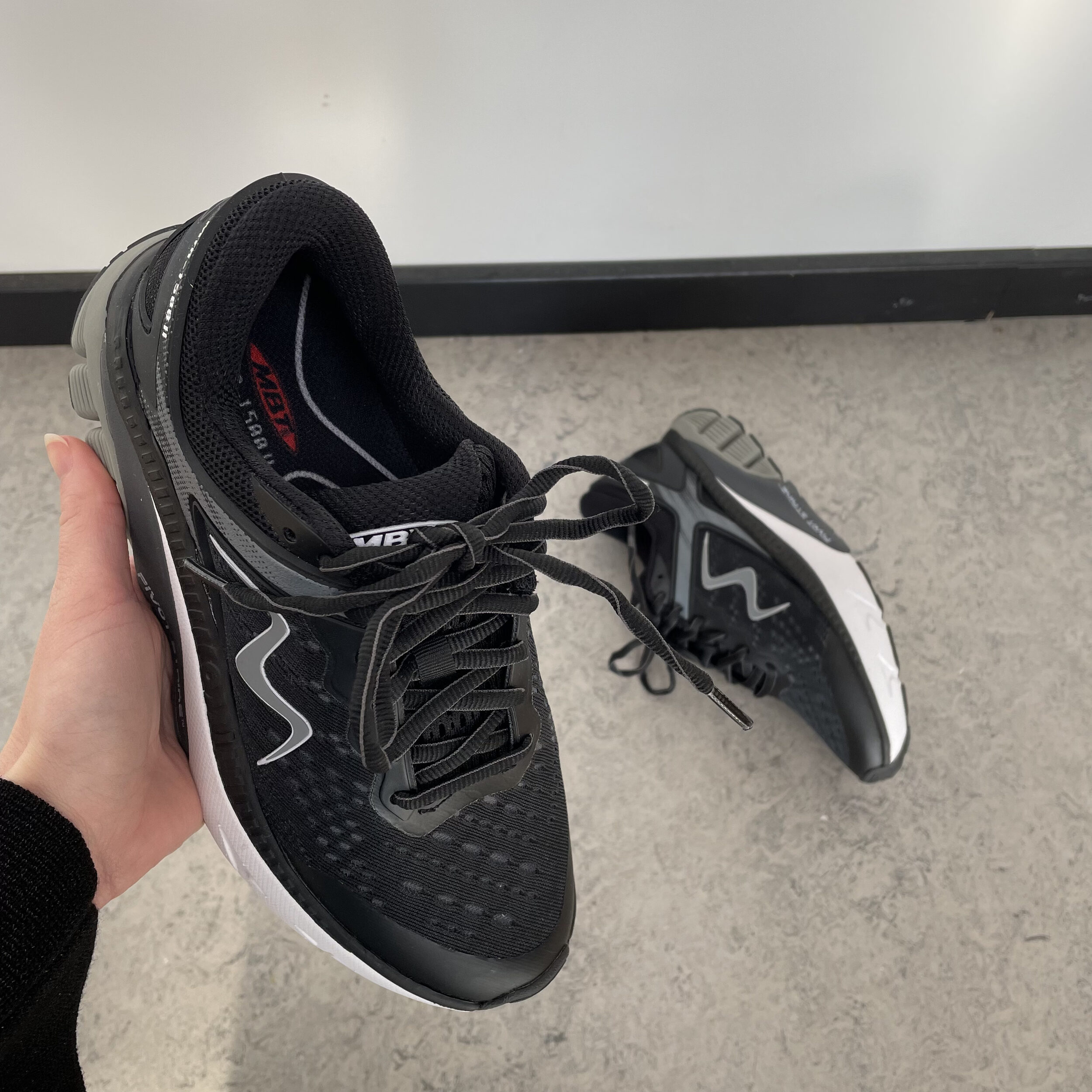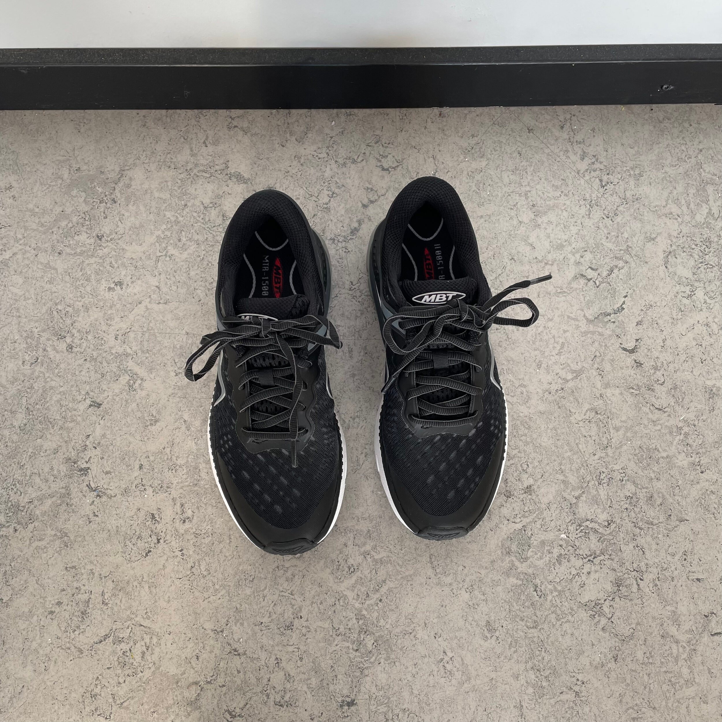Skoen har en unik sålekonstruksjon som gjør at vekten raskt fordeles fra hæl til forfot, noe som er forskjellen på en vanlig sko og en MBT sko.