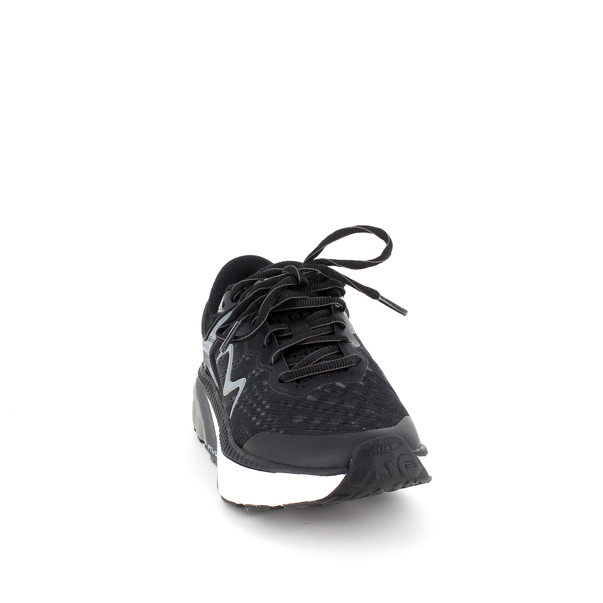 Skoen er svart med fine detaljer og en overdel av pustende mesh.