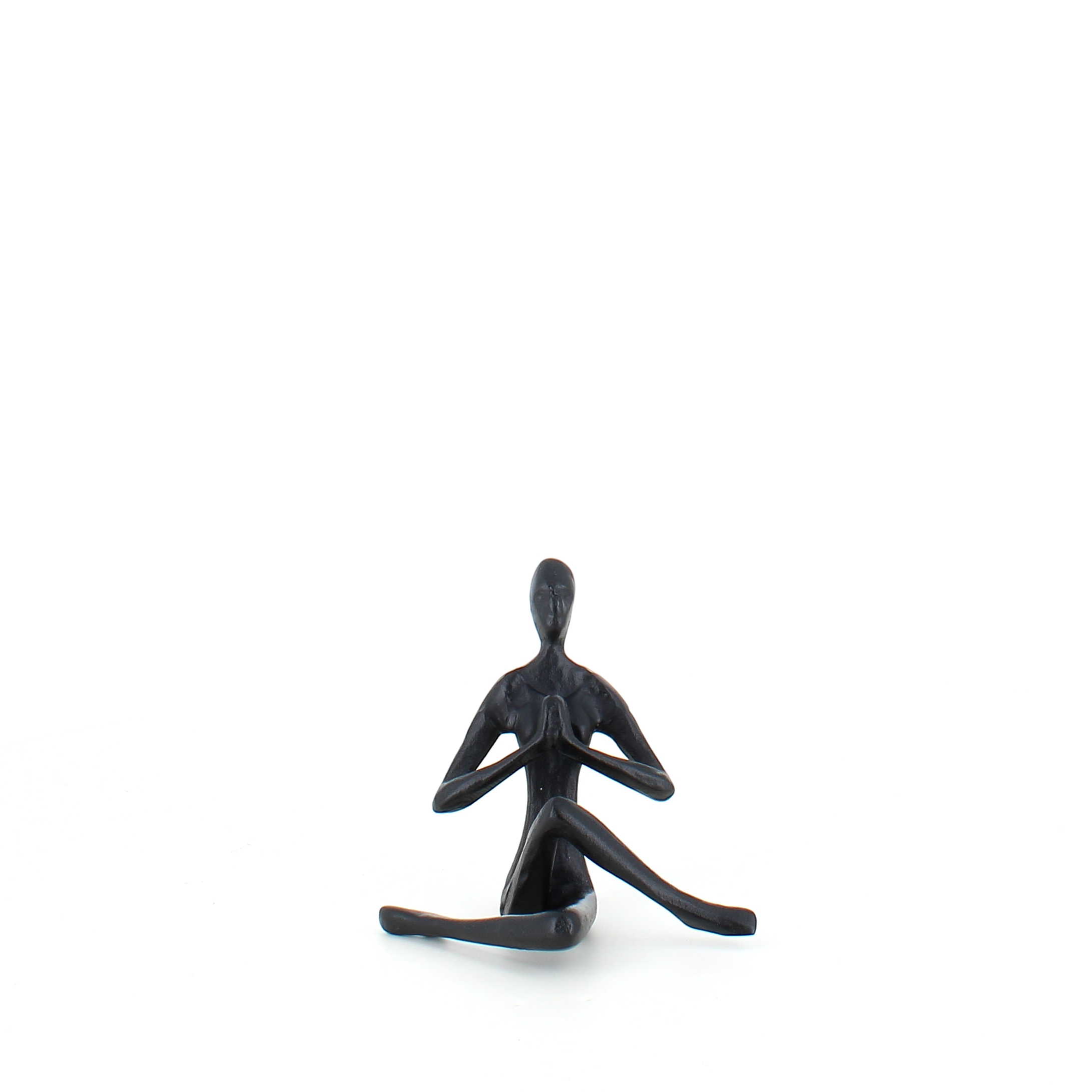 Denne vakre skulpturen i matt sort metall utstråler en dyp følelse av indre ro og balanse. Figuren sitter i en meditativ stilling med hendene samlet foran brystet i en klassisk yoga- eller meditasjonspositur, som symboliserer indre fred og åndelig balanse. Det minimalistiske designet gir skulpturen en moderne estetikk, noe som gjør den velegnet til enhver innredning hvor du ønsker å skape en atmosfære av ro og refleksjon.