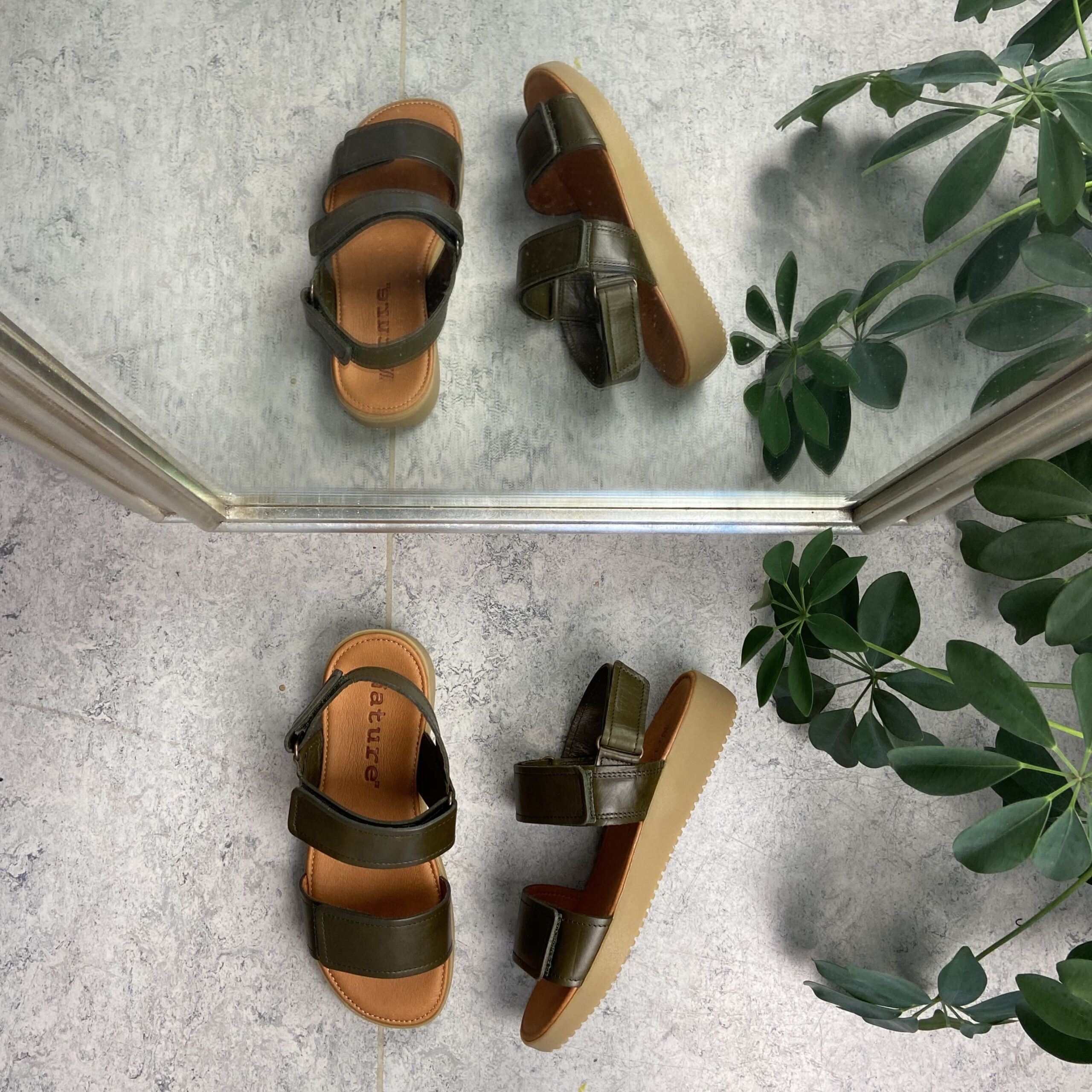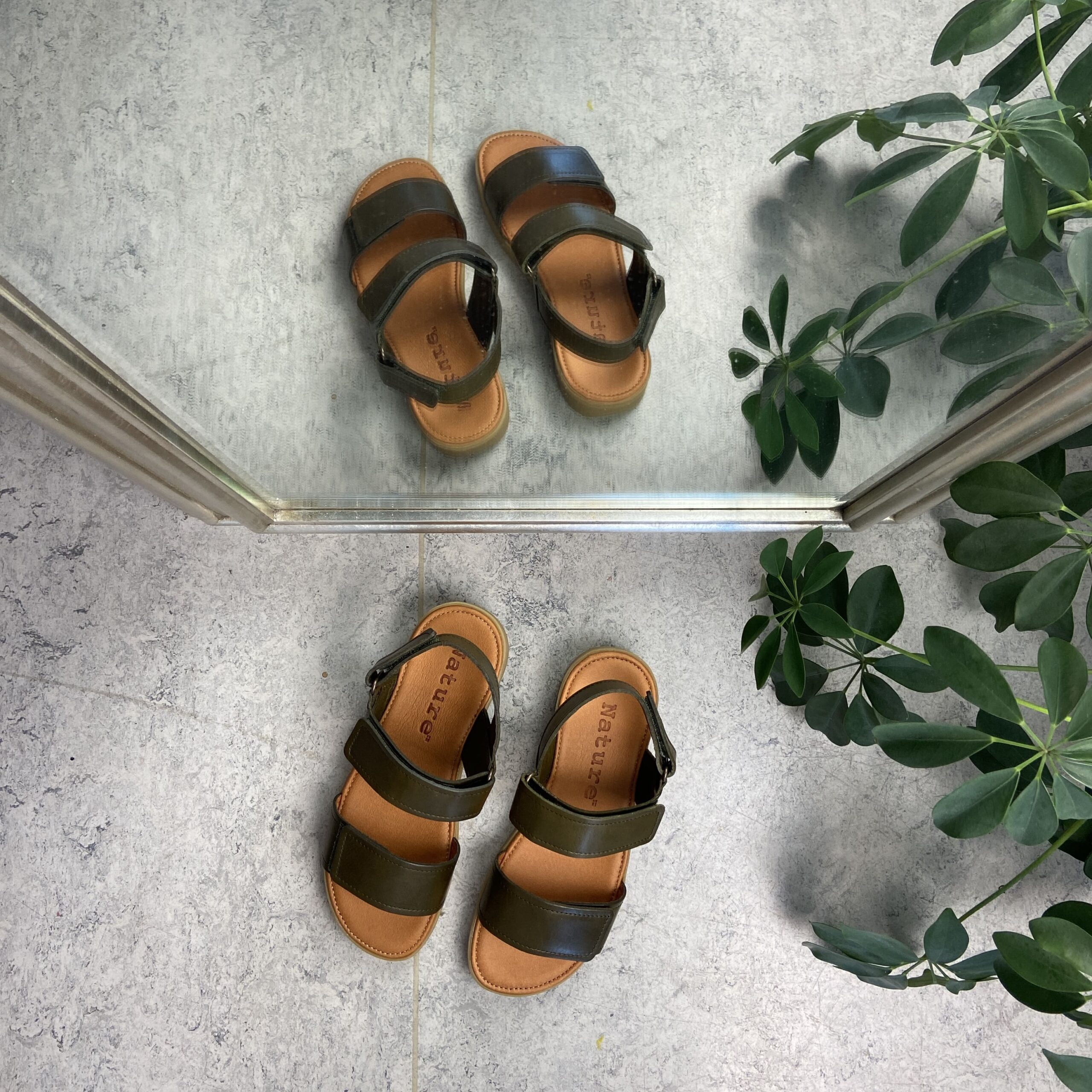 Olivengrønn lćrsandal fra Nature med vegetabilsk garvet skinn som derfor er helt fri for krom.
