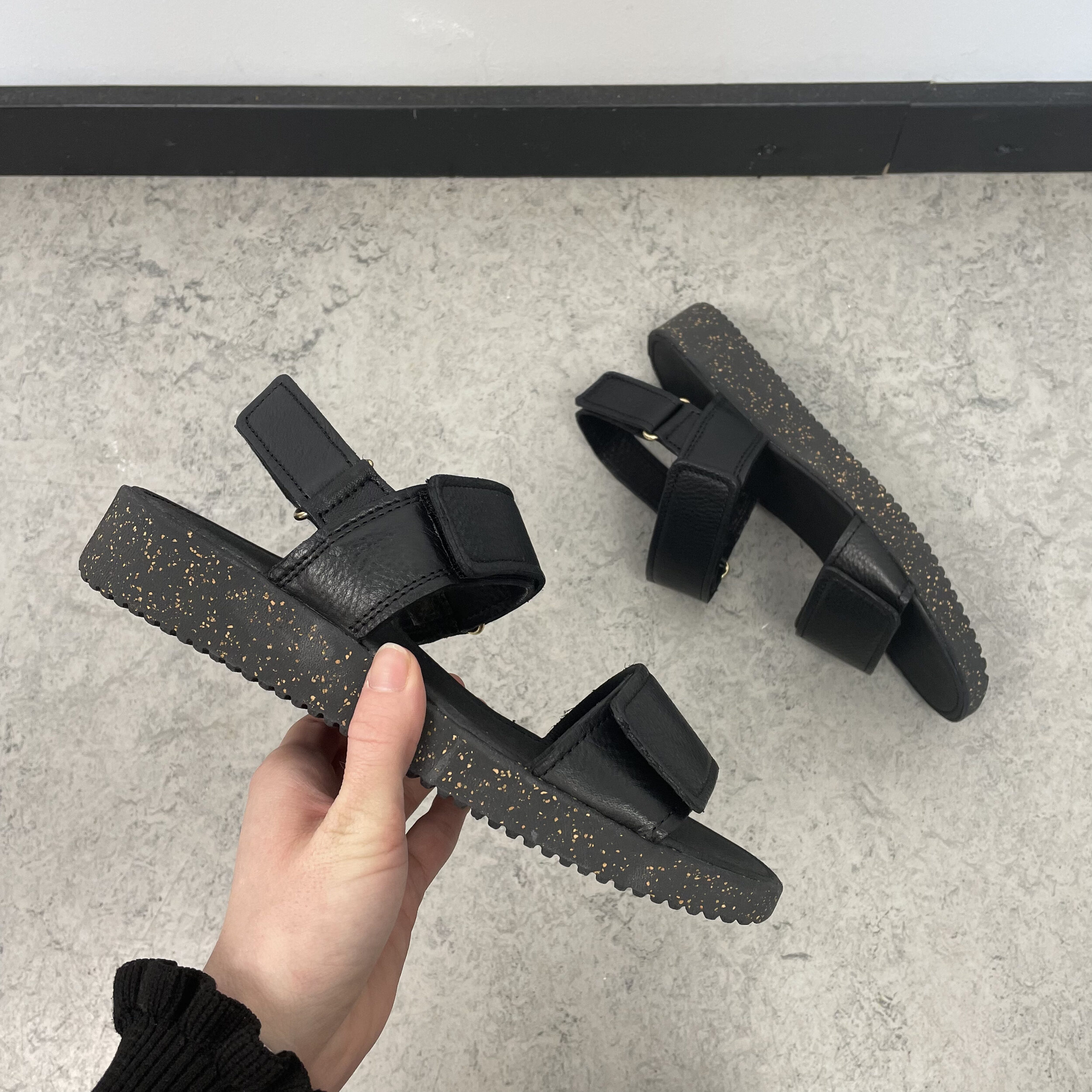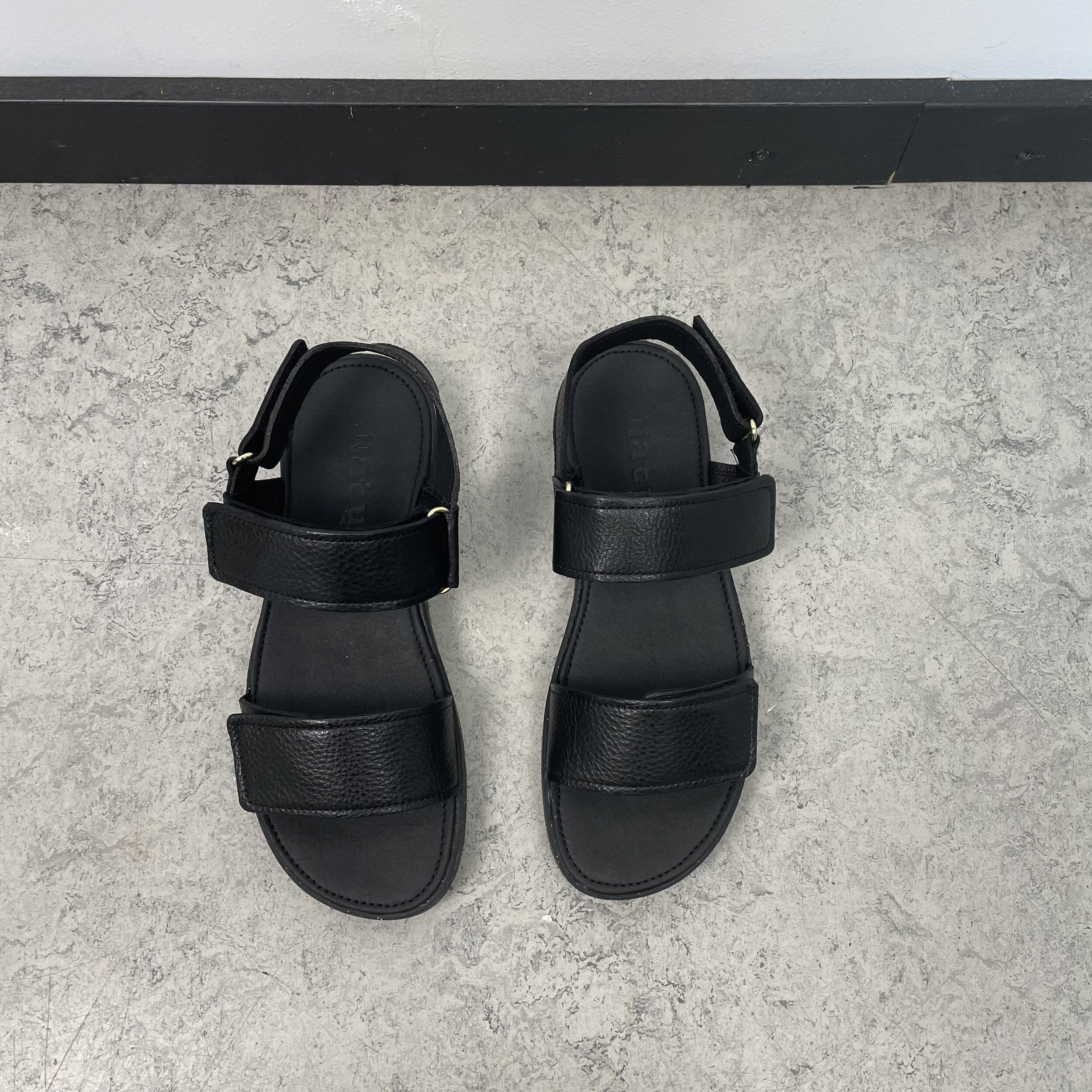 Sort sandal med lyse såler fra Nature. Moderne design og fantastisk ergonomi.