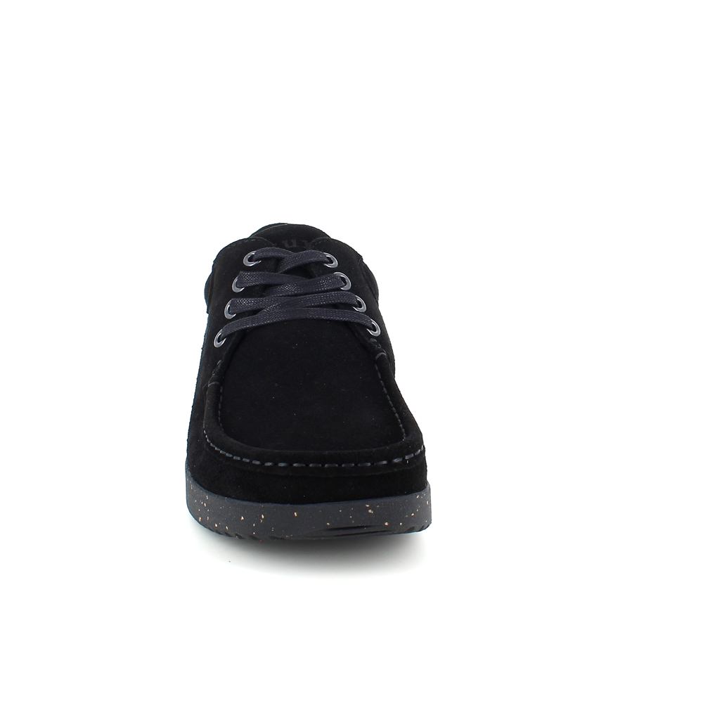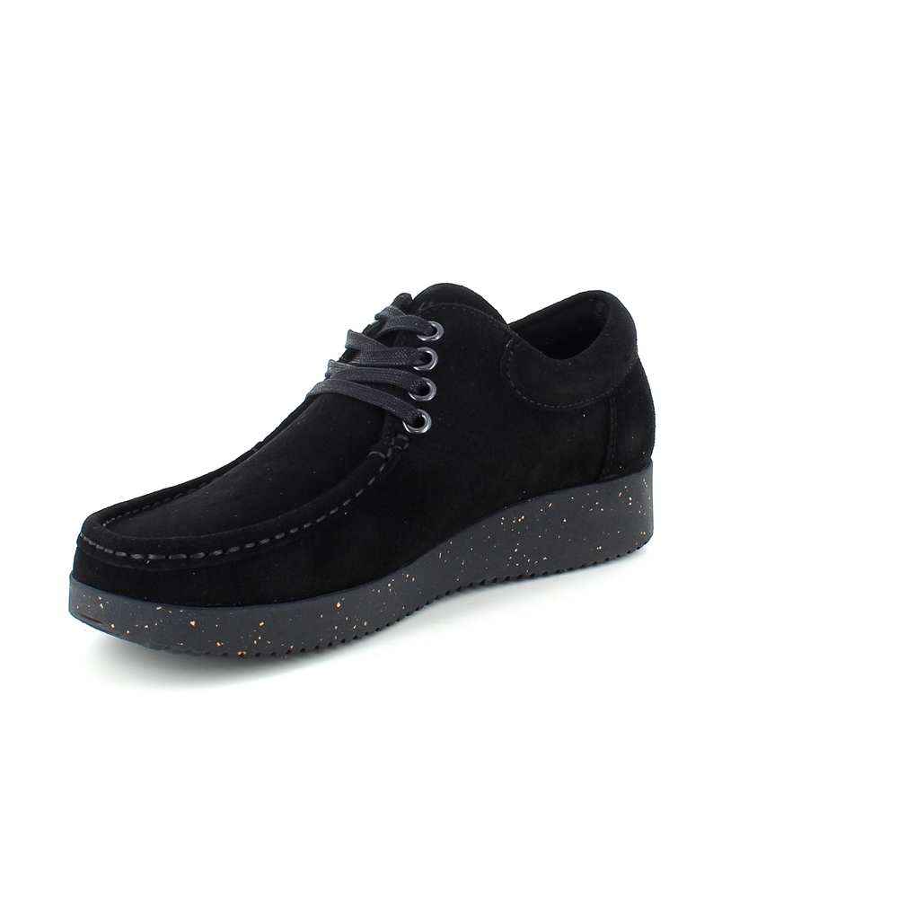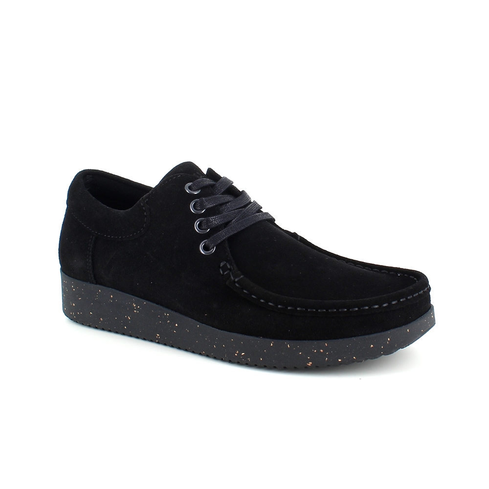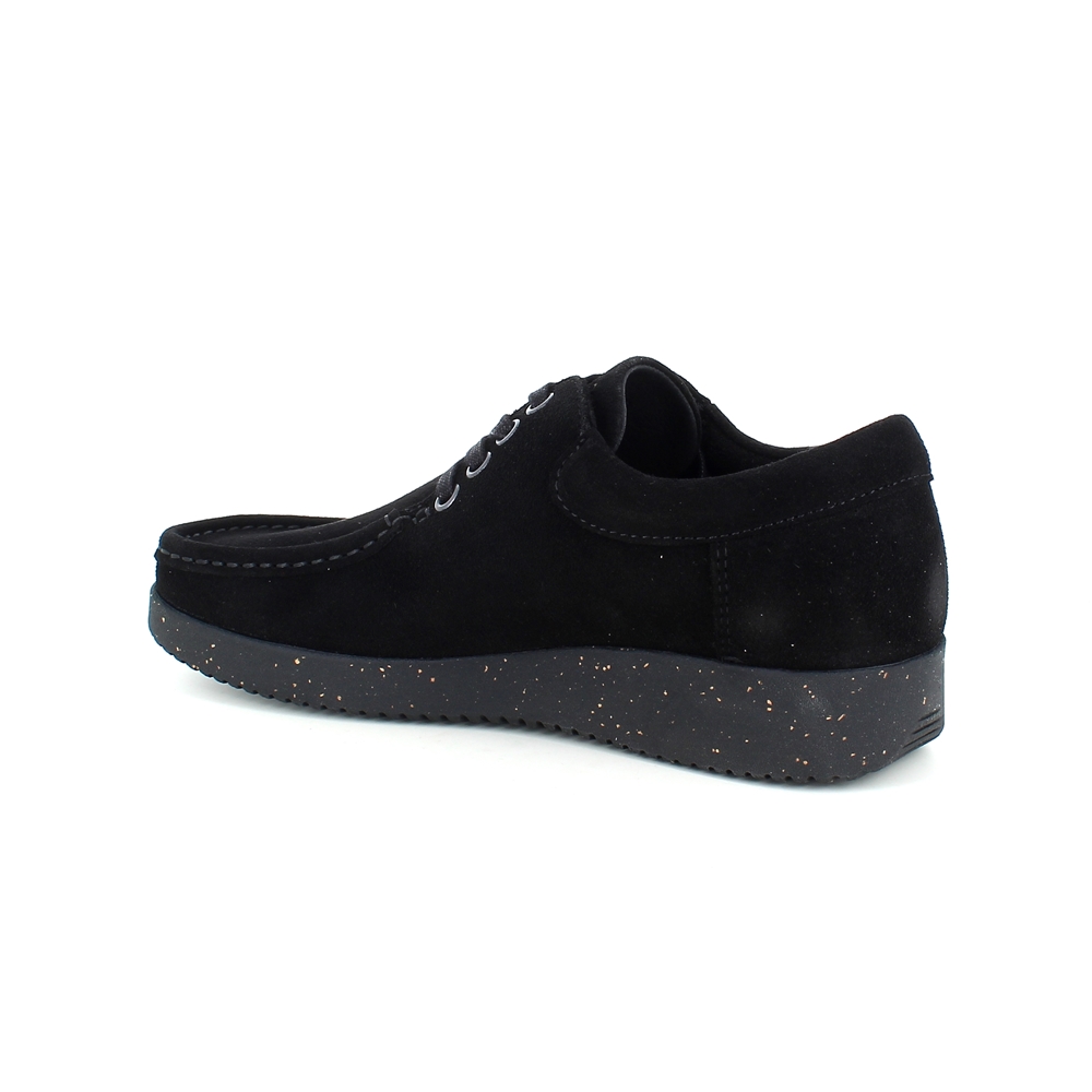 Nature sko i svart semsket skinn med brune flekker i sålen