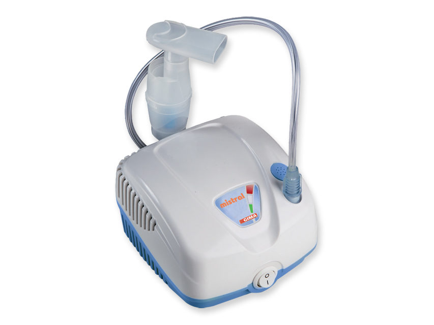 Leveres med Hi Flo pære, voksen og pediatrisk maske med snor, munnstykke, nesestykke, luftslange og luftfilter.