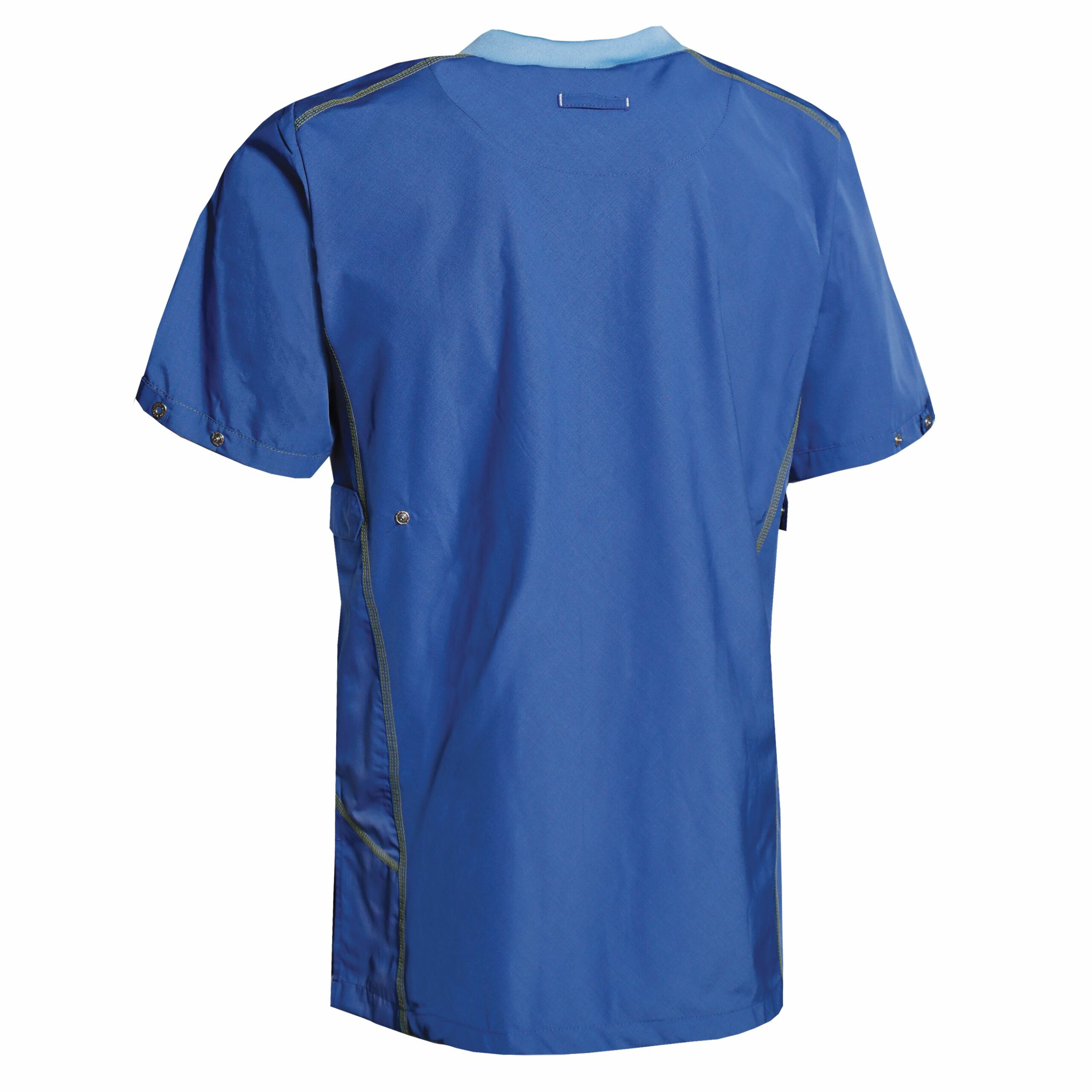 Materialet, som består av en blanding av 50% polyester og 50% BC-bomull, sikrer pusteevne og holdbarhet, ideelt for lange arbeidsdager. Uansett om du velger den klassiske blå eller en av de andre flotte fargene, garanterer denne tunikaen komfort og funksjonalitet.
