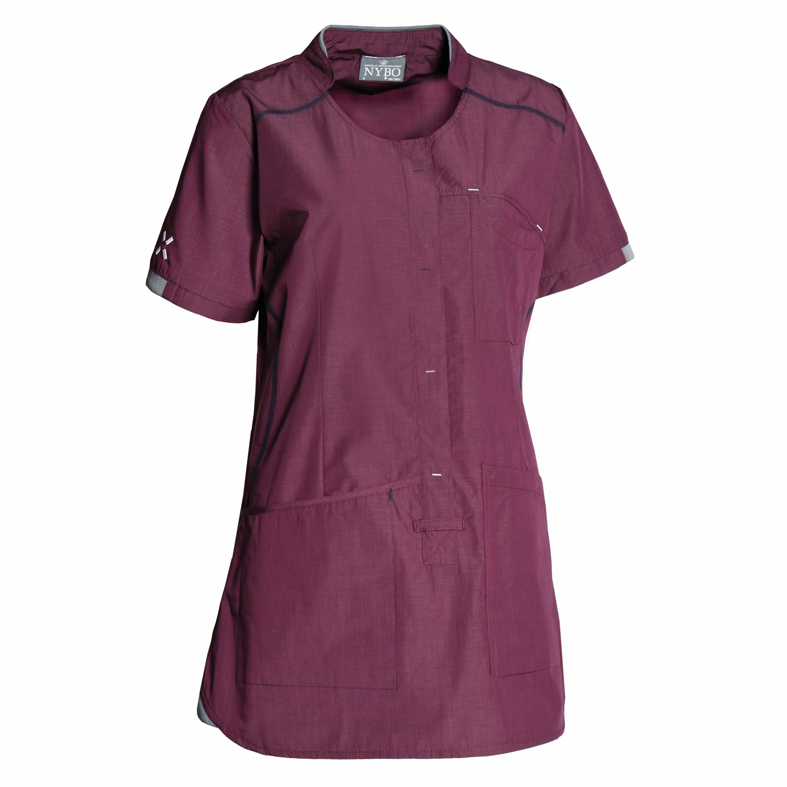 Oppdag den allsidige og fleksible Nybo Bordeaux Damebusseronne – en sporty og lett innsvingt arbeidstunika som gjør hverdagen enklere. Denne damebusseronnen har en stor frontåpning slik at den enkelt kan trekkes av over bena og minimerer kontakt med ansiktet ditt, noe som forbedrer hygienen. Med smart justeringsfunksjon i ryggen kan du tilpasse innsvingningen ytterligere for en perfekt passform. Den romslige brystlommen samt hoftelommene med nøkkelstropper og mobillommer, alle utstyrt med trykknapper, sørger for at du kan ha det nødvendige sikkert med deg.
