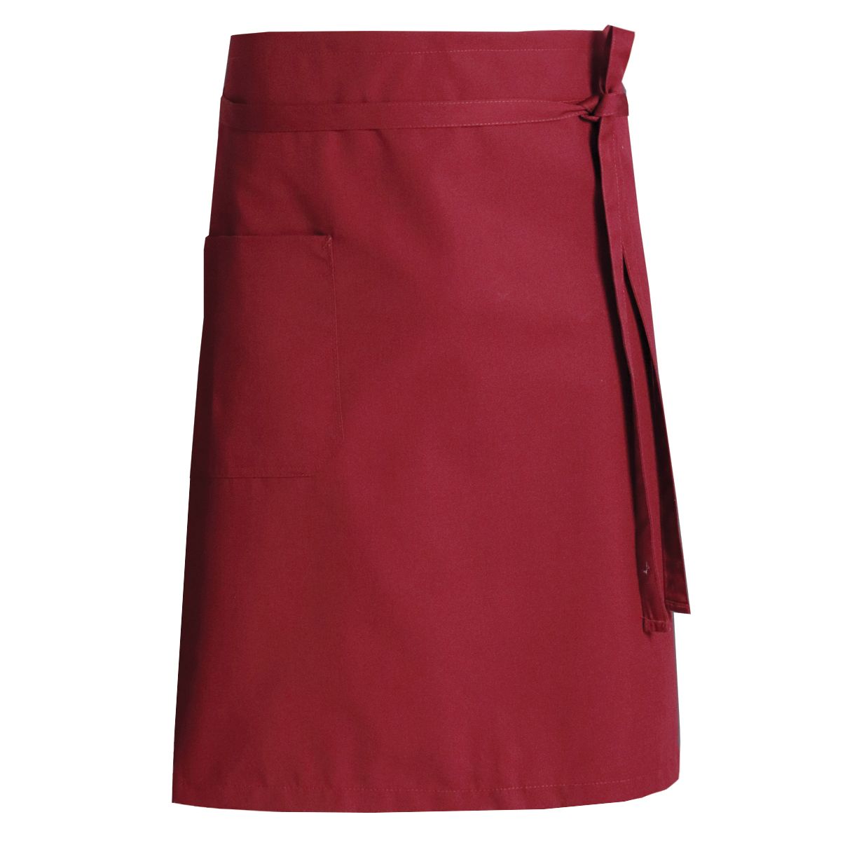 Nybo Workwear A/S presenterer et allsidig forkle for både menn og kvinner, ideelt for bruk på kafeer og restauranter. Dette vinrøde forkledet har et klassisk kort forstykke med et praktisk påsydd knytebånd og en lomme plassert strategisk på høyre lår for enkel tilgang. Forkledet måler 60 cm i høyden og 98 cm i bredden, noe som gjør det til en funksjonell løsning i ethvert travelt arbeidsmiljø.