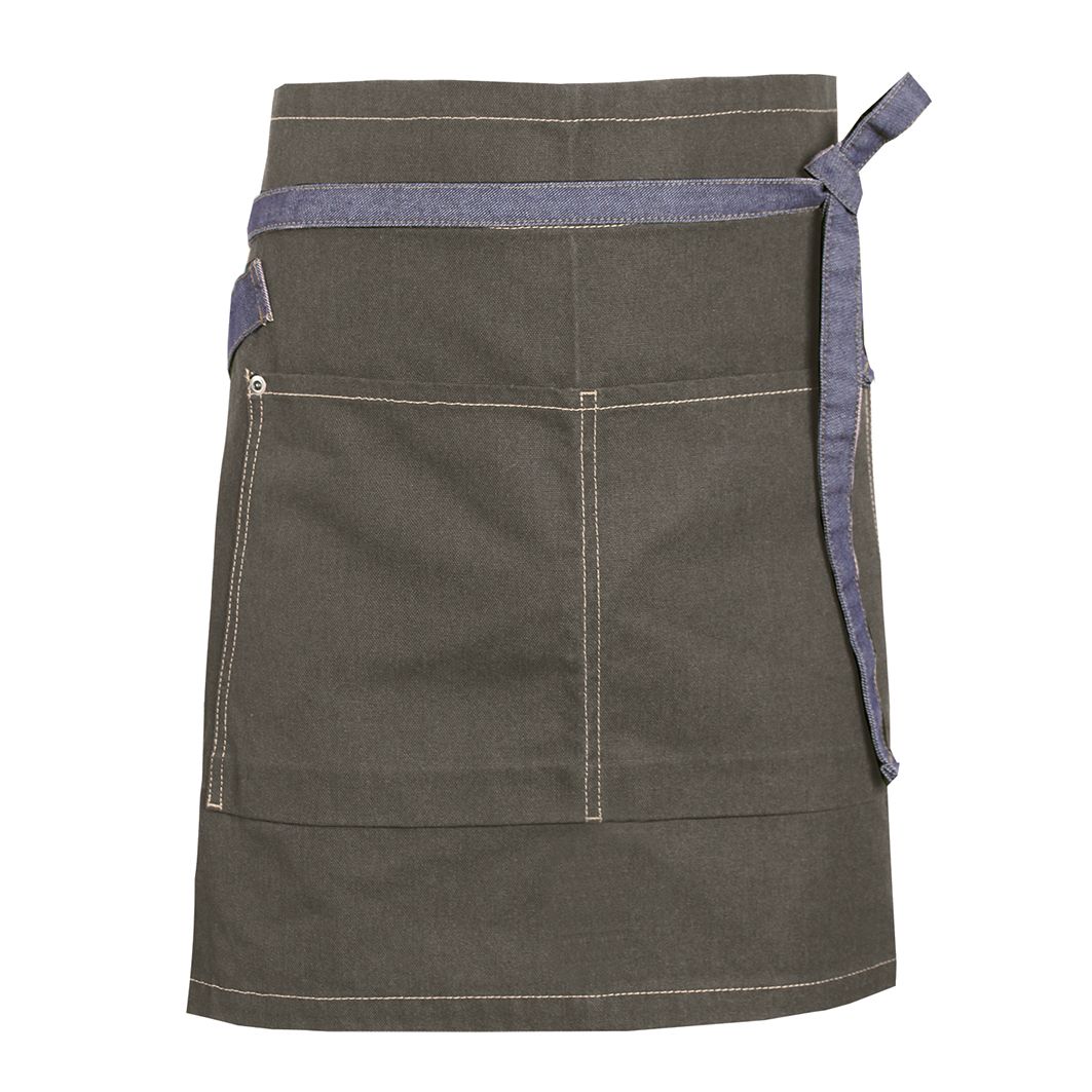 Materialet består av et kraftig lerretsvev av en blanding av polyester og bomull, som både er holdbart og blir mykere for hver vask, noe som gjør det til et langvarig valg. Forkleet kommer også i flere fargekombinasjoner som brun/brun, khaki/denimblå, khaki/khaki, svart/denimblå, og svart/svart, hvilket gir deg mulighet til å velge den fargen som best passer til din stil.