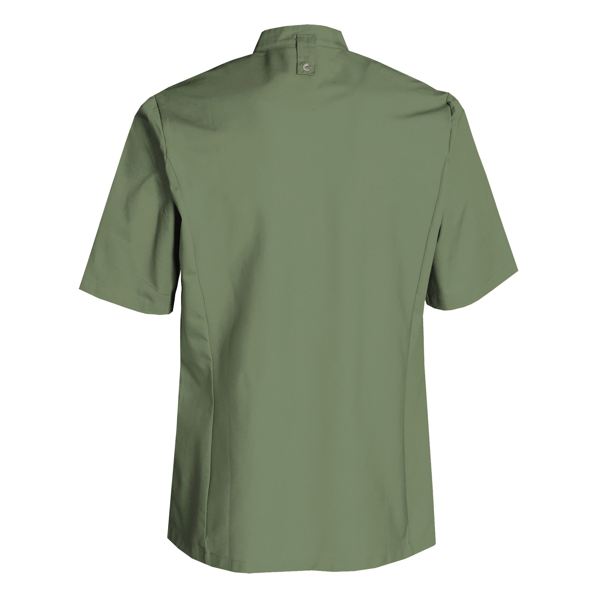 Den unisex kokkejakken fra Nybo Workwear A/S er en kortermet variant designet med både stil og funksjonalitet i tankene. Kokkejakken kommer i en flott grønn farge som komplementerer det ergonomiske og strekkbare designet, og matcher sesongens beste farger på kjøkkenet. Med en minimalistisk og smart stil er denne kokkejakken det perfekte valget for både menn og kvinner. Foran finnes skjulte trykknapper, som gir et rent og elegant utseende, kombinert med en praktisk paspellomme på brystet og ermet. Splitt på sidene sikrer optimal bevegelsesfrihet, mens den klassiske kinakraven med trykknapplukking understreker det tradisjonsrike designet. Den nyutviklede brede stroppen bak gir mulighet til å holde forkleet solidt på plass.