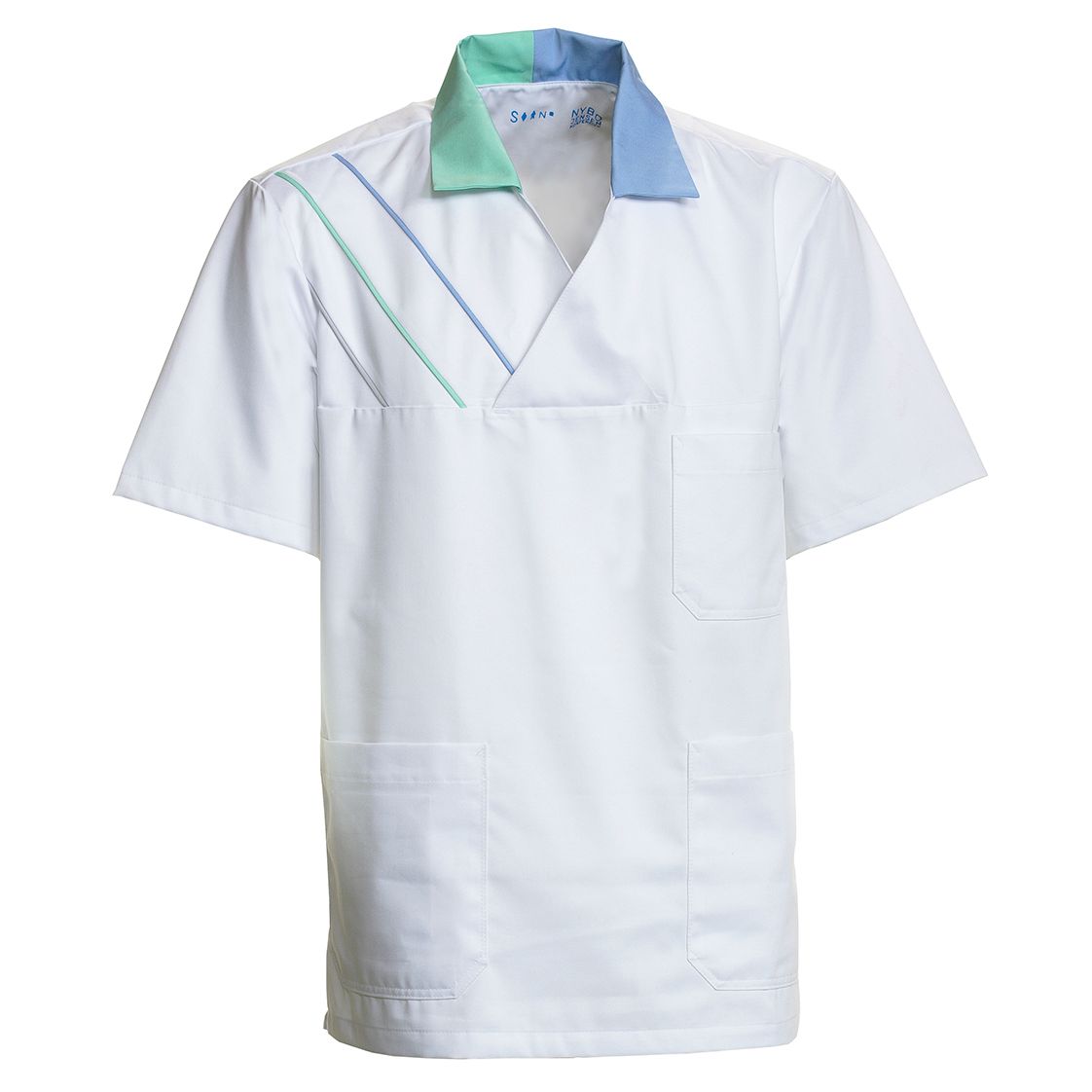Denne bussarongen er en del av en fantastisk serie for helsesektoren, der man har prioritert komfort med Comfortec Satin, som består av en høy andel bomull mot kroppen. De hvite overdeler med farget krage og detaljer er velegnet for CI-kledning og kan lett tilpasses firmaets logo. Serien tilbyr også alternativer i fargene hvit/oransje/rød og hvit/rød/grå, noe som gjør det enkelt å finne den perfekte nyansen for ethvert behov.