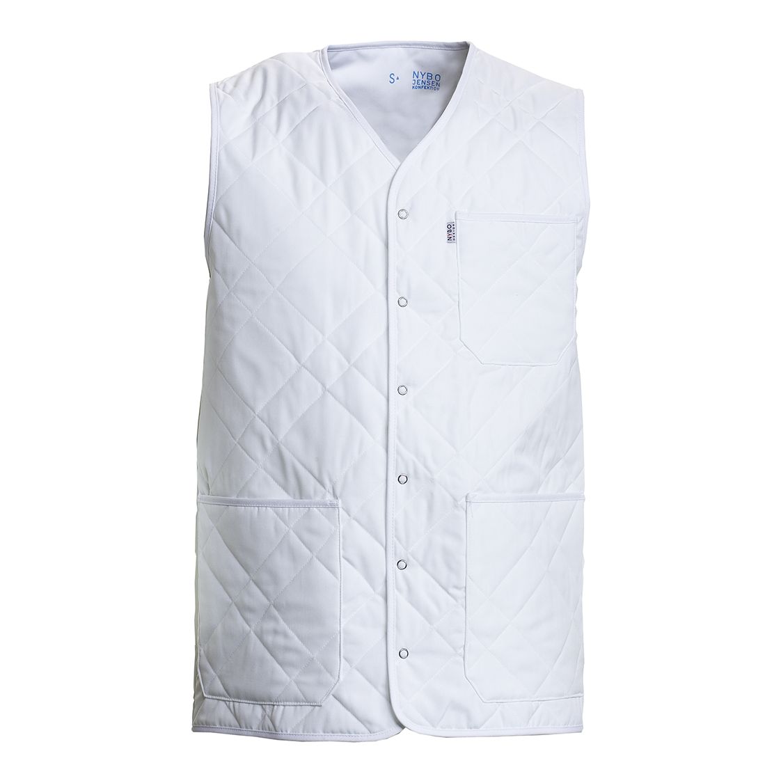Nybo Workwear A/S presenterer denne smarte og funksjonelle hvite unisex Clima Sport termovest med utvendige lommer. Denne vesten er ideell for deg som trenger ekstra oppbevaringsplass, da den har store hoftelommer og en praktisk brystlomme på venstre side, perfekt for penner eller andre småting. Vesten er enkel å ta av og på med trykknapper foran, noe som gjør den svært brukervennlig.