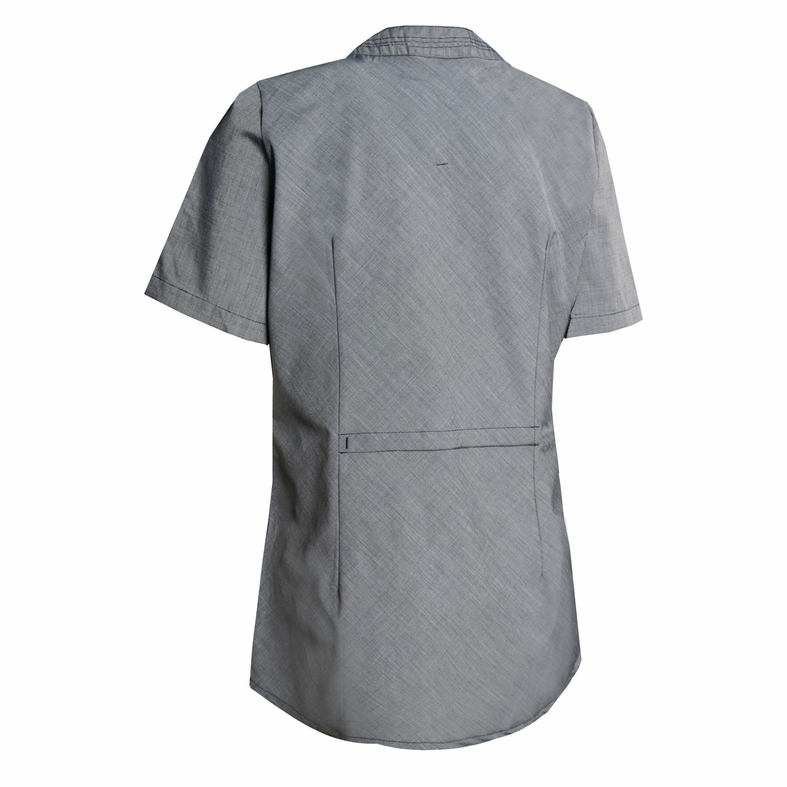 Kolleksjonen byr på diskrete farger og er laget av en slitesterk blanding av resirkulert polyester og økologisk bomull, som til sammen skaper klær som både er holdbare og bærekraftige. Designet støtter din faglige profil, samtidig som det er vennlig og imøtekommende. I tillegg til koksgrå er denne tunikaen også tilgjengelig i marineblå, lyseblå, grønn og bordeaux, slik at du har flere stilige alternativer.