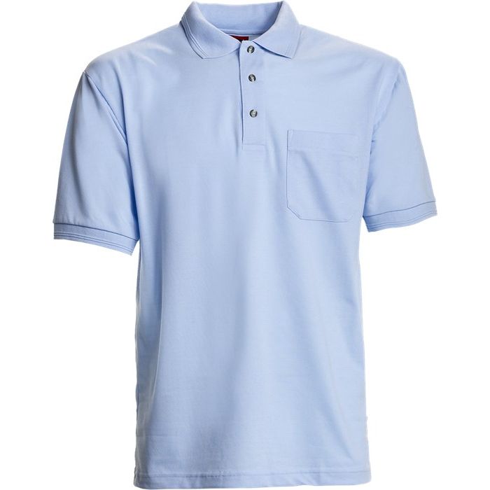 Nybo Lyseblå Herre Basic Poloskjorte, Kortermet, Slitesterk, Ribbedetaljer, Brystlomme