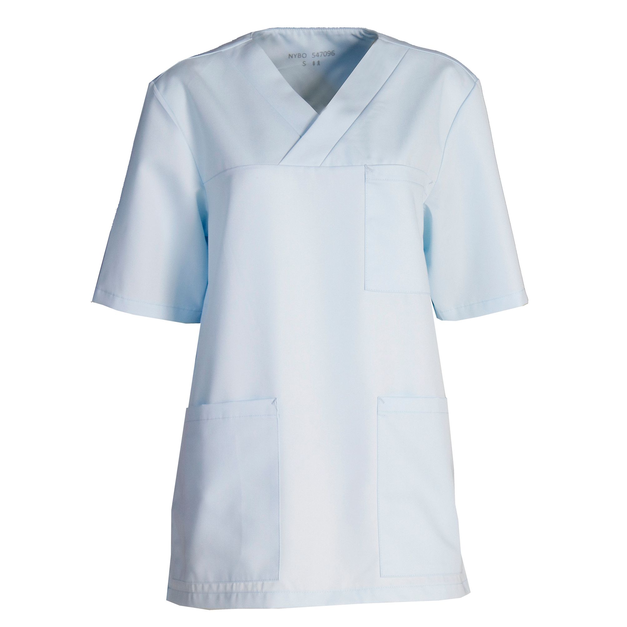 Denne lyseblå bussarongen fra Nybo Workwear A/S er både praktisk og stilfull. Med en avslappet passform, rett snitt og en god lengde som effektivt dekker bak og hofter, er denne bussarongen skapt for å møte behovene i enhver arbeidssituasjon. De korte ermene dekker overarmene og gir et moderne og sporty uttrykk, mens V-formet halsåpning med et bredt bånd gir en flott detalj til halsutskjæringen. Designet inkluderer en stor brystlomme og to romslige hoftelommer, hvor den høyre hoftelommen også har en innvendig lomme for sikker oppbevaring av telefoner eller andre enheter.