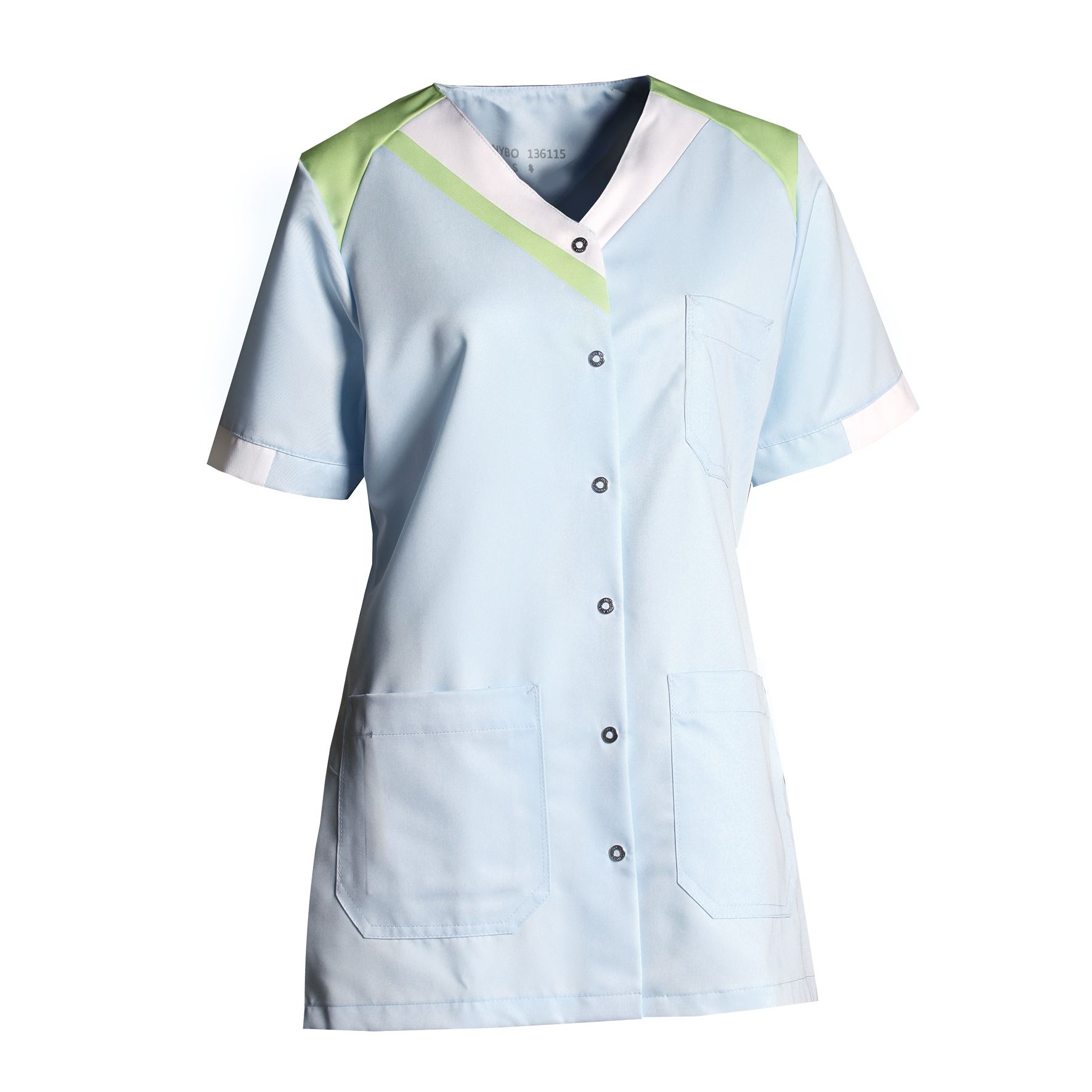 Med praktiske funksjoner som en brystlomme utstyrt med en stropp for penn eller ID-kort, to romslige hoftelommer, hver med nøkkelstropper, og en smart mobiltelefonlomme inni høyre hoftelomme, er denne tunikaen laget for din komfort og bekvemmelighet. Den passer perfekt til arbeidet i helse- og servicesektoren.