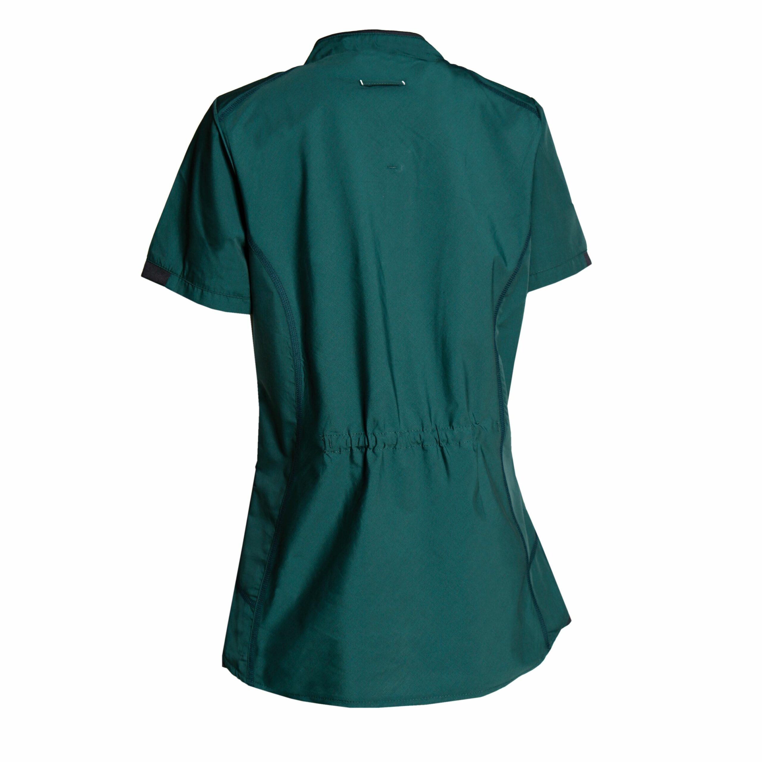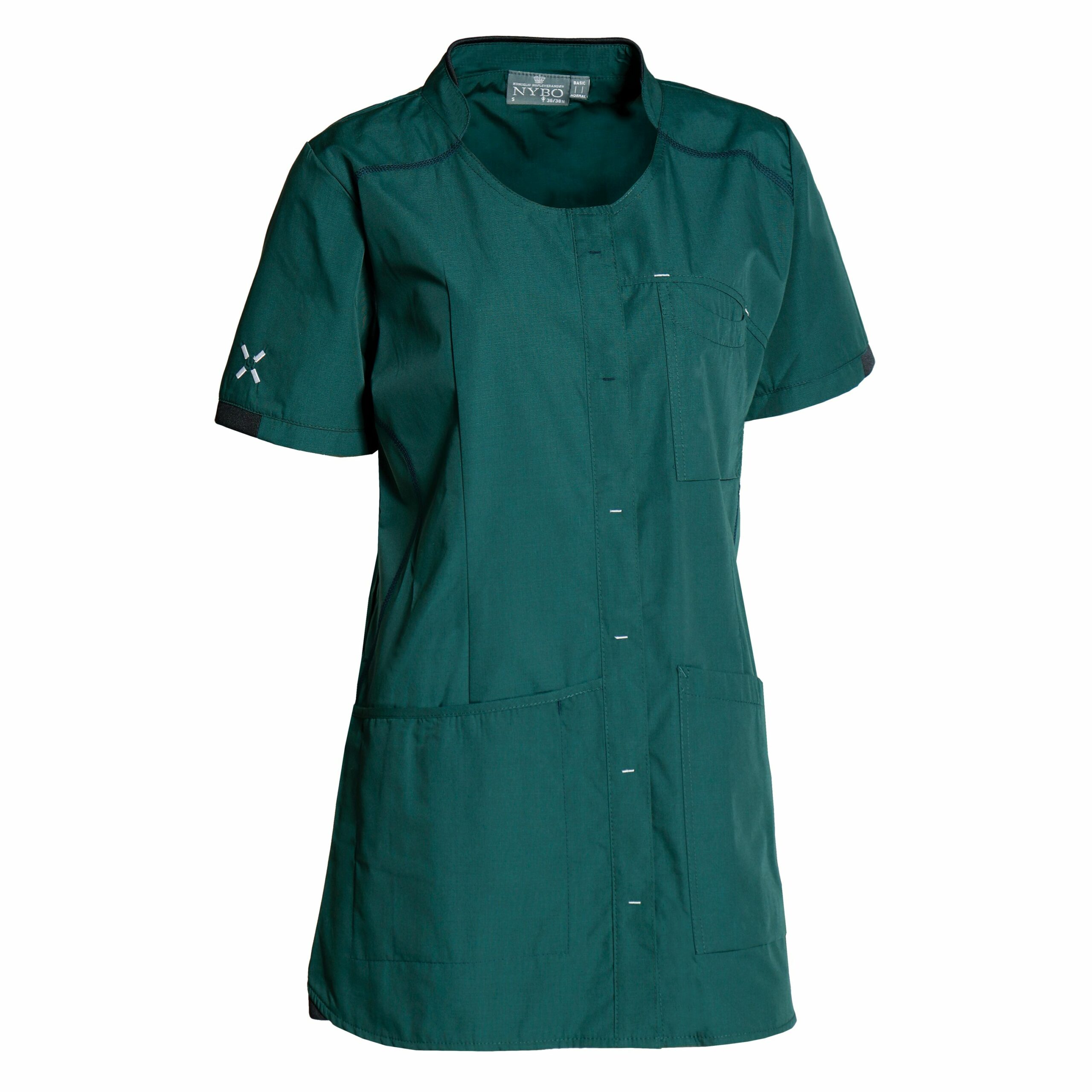 Nybo Workwear A/S presenterer en mørkegrønn dametunika med et sporty og praktisk design. Denne dametunika er lett innsvinget og kan justeres ytterligere i midjen takket være en smart justeringsfunksjon i ryggen. Praktiske detaljer som en romslig brystlomme og hoftelommer med nøkkelstropper og integrerte mobillommer gjør tunikaen svært funksjonell. Alle lommer er utstyrt med trykknapper, slik at dine eiendeler alltid er sikre. Modellen har en god lengde som dekker godt ved bøying og løft, og med en avrundet bunn og rib i sidene får du ekstra fleksibilitet.