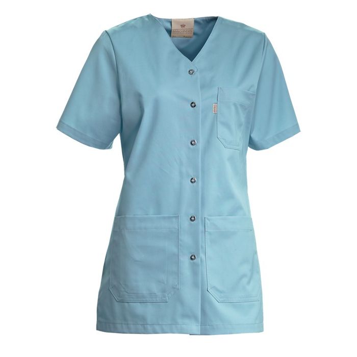Dametunikaen er fremstilt av en 50/50% blanding av polyester og bomull med en vekt på 180g/m², noe som sikrer både komfort og holdbarhet. Tilgjengelige størrelser: XS/34, S/38, M/42, L/46, XL/50, 2XL/54, 3XL/58, 4XL/62. Merk at det er en merpris på 15% for størrelser 2XL og opp.