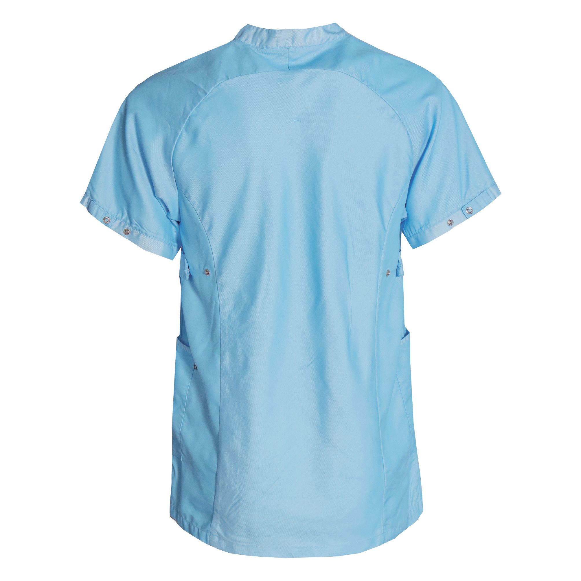 Denne romslige unisex busseronn fra Nybo Workwear A/S er en perfekt kombinasjon av komfort og funksjonalitet. Den turkise overdelen har skjult trykknapplukking foran samt myke tone-i-tone detaljer ved krage og ermeåpninger. Med stretch i ryggen og justerbare stropper i sidene, passer denne modellen enkelt til ulike kroppstyper, noe som gjør den egnet for både menn og kvinner. Raglanermer og regulerbare ermeåpninger bidrar til en optimal passform og komfort.