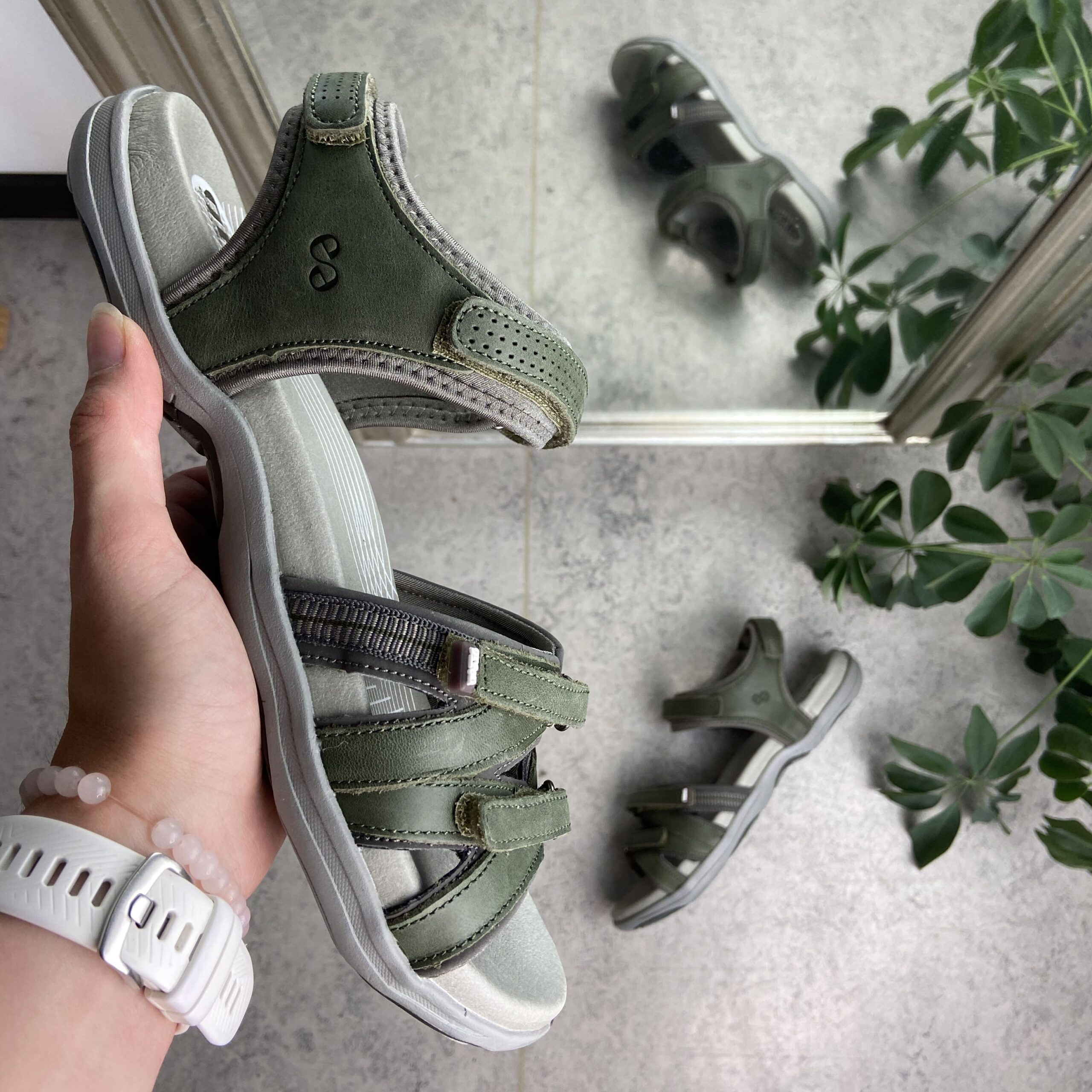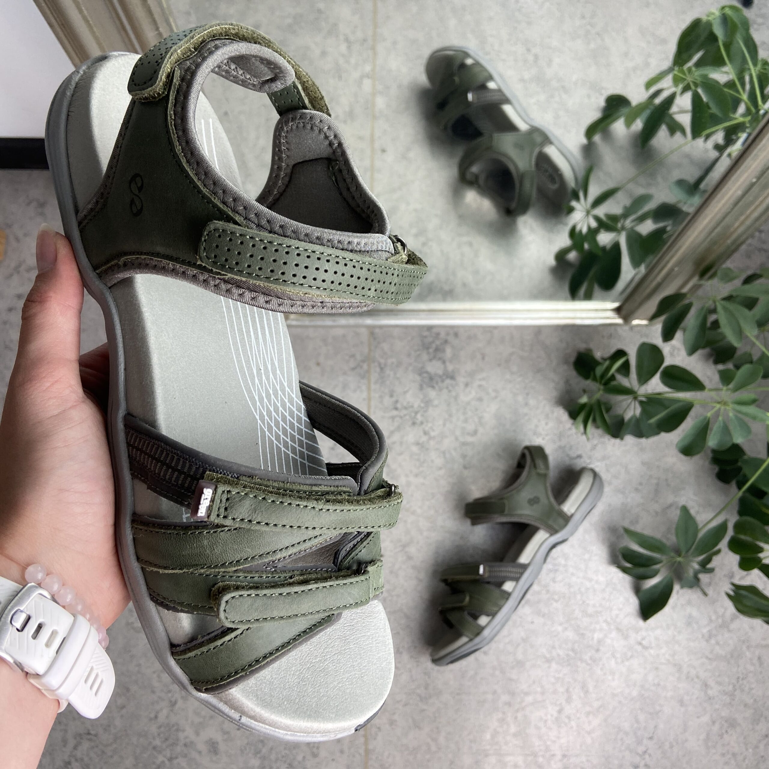 Olivengrønn sandal fra Green Comfort med fire justerbare remmer