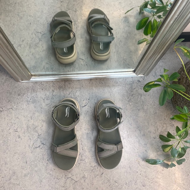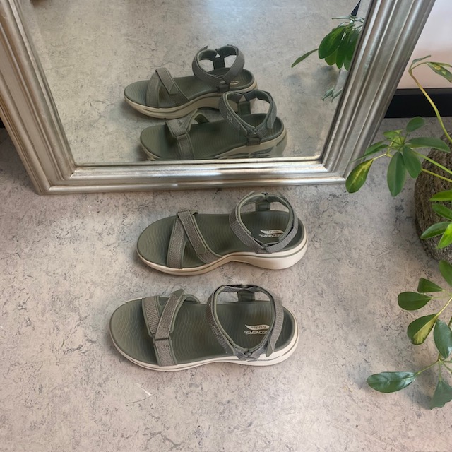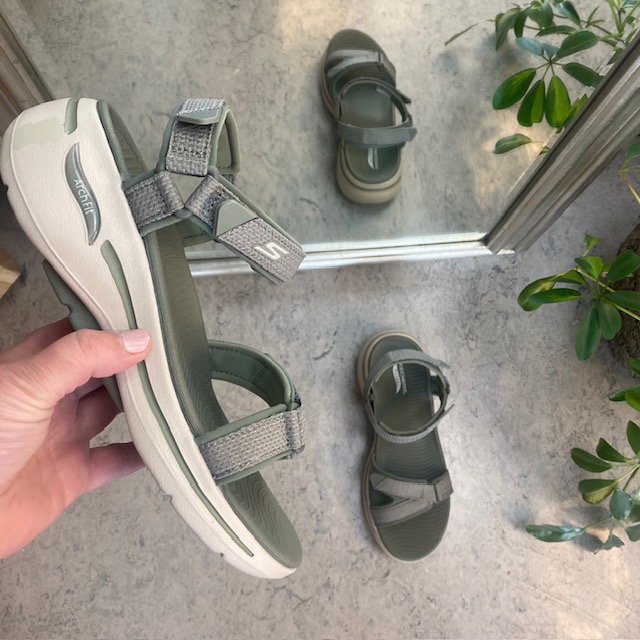 Olivengrønn sandal fra Skechers med god bue støtte